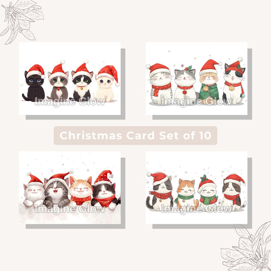 Cat Christmas Card Set B – Printable Pet Greeting Cards – Set of 10 Holiday Cards