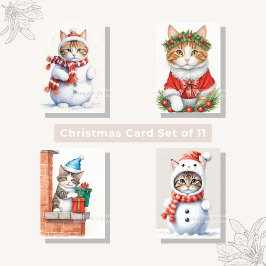 Cat Christmas Card Set D – Printable Pet Greeting Cards – Set of 11 Holiday Cards