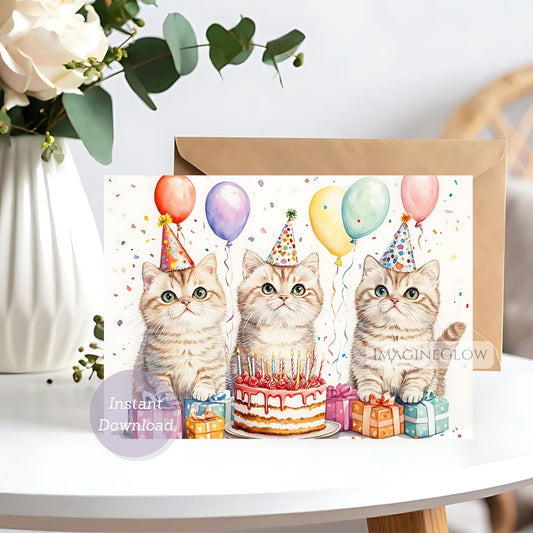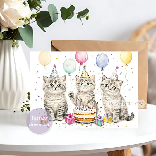 Cute Kitten Birthday Card - Three Cats Greeting Printable Card