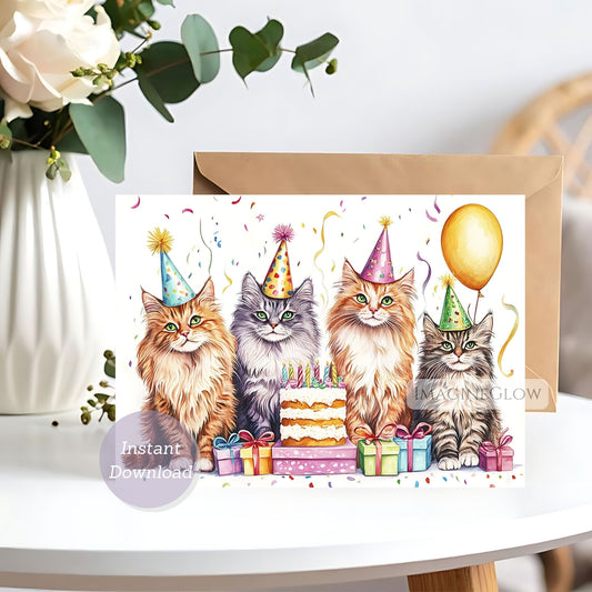 Maine Coon Cat Birthday Card - Fluffy Cat Greeting - Printable