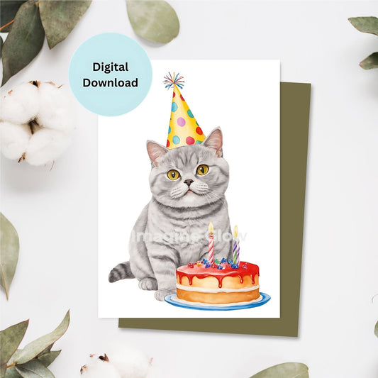 British Shorthair Cat Birthday Card – Printable Greeting Card