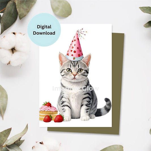 American Shorthair Cat Birthday Card - Printable Greeting Card