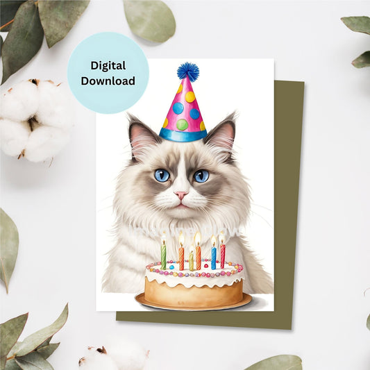 Maine Coon Cat Birthday Card - Adorable Printable Card