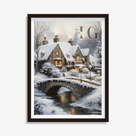 Old English Village Art Print - Printable Winter Wall Decor for Cozy Holiday Atmosphere