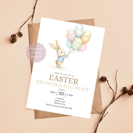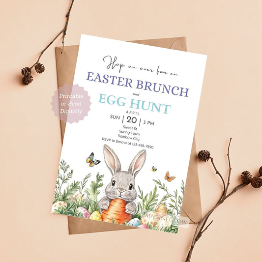 Easter Bunny Invitation - Spring Brunch & Egg Hunt Party Invite Template