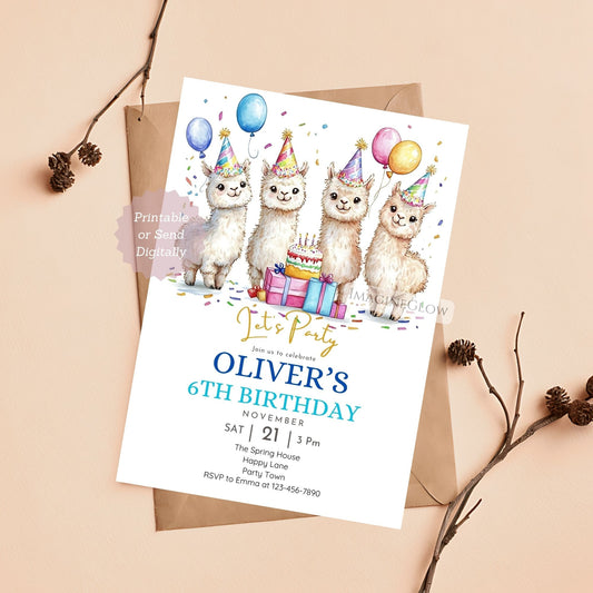 Alpaca Birthday Invitation - Cute Llama Party Invite Template