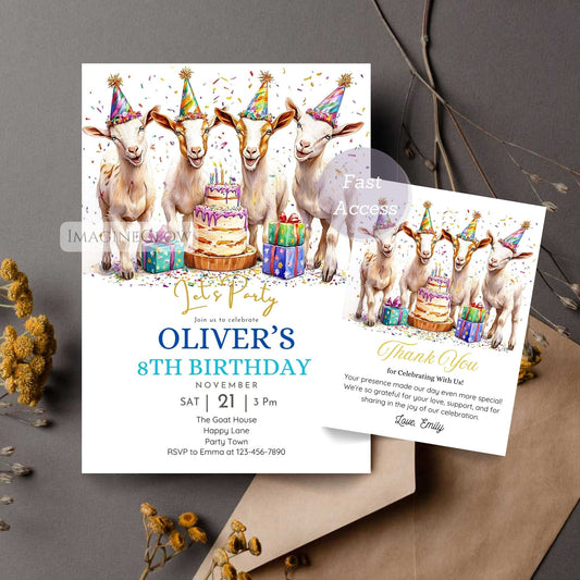 Goat Birthday Invitation & Thank You Card - Farm Animal Party Printable