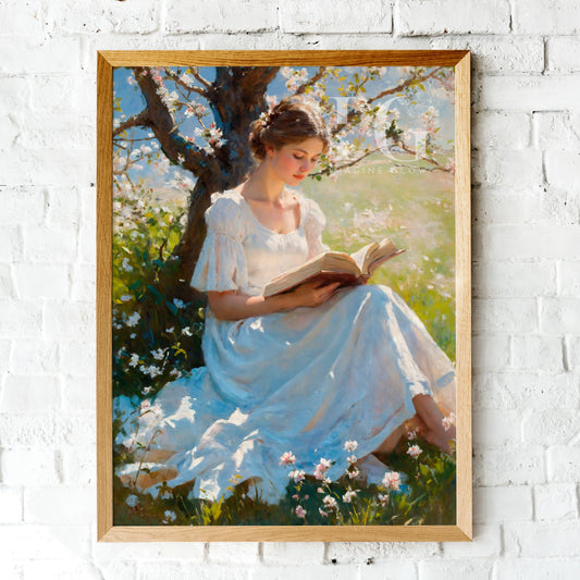 Woman Reading Under the Tree - Printable Reading Nook Wall Art for Tranquil Decor