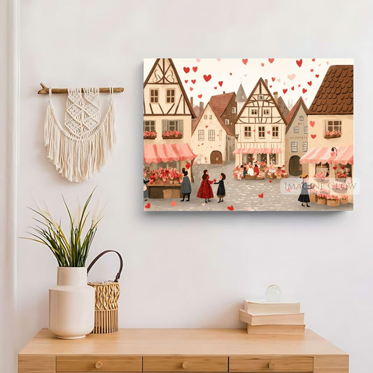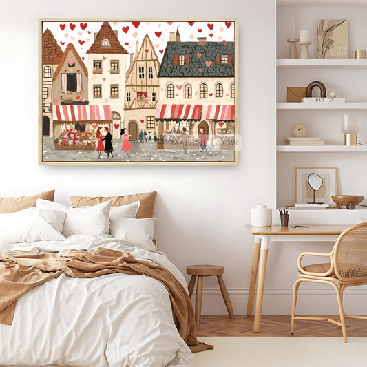 Romantic Village Art Print - Love-Themed Wall Decor - Digital Art