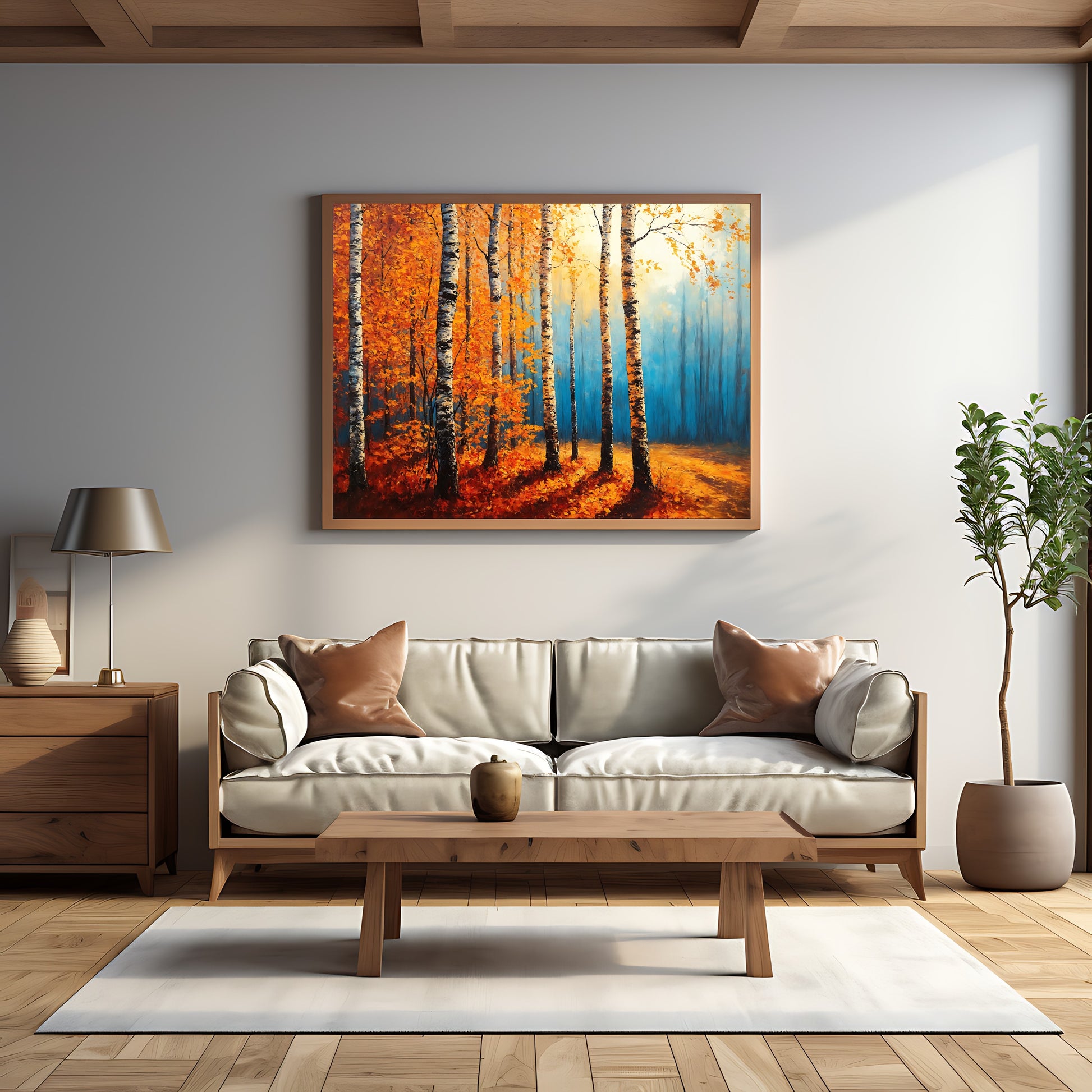 Bring the rich colors of fall into your home with this "Forest Painting." This printable autumn wall art captures the stunning beauty of a forest in autumn, with vibrant foliage and serene natural details. Ideal for creating a cozy, nature-inspired atmosphere, this artwork is perfect for adding a seasonal touch to any room in your home.