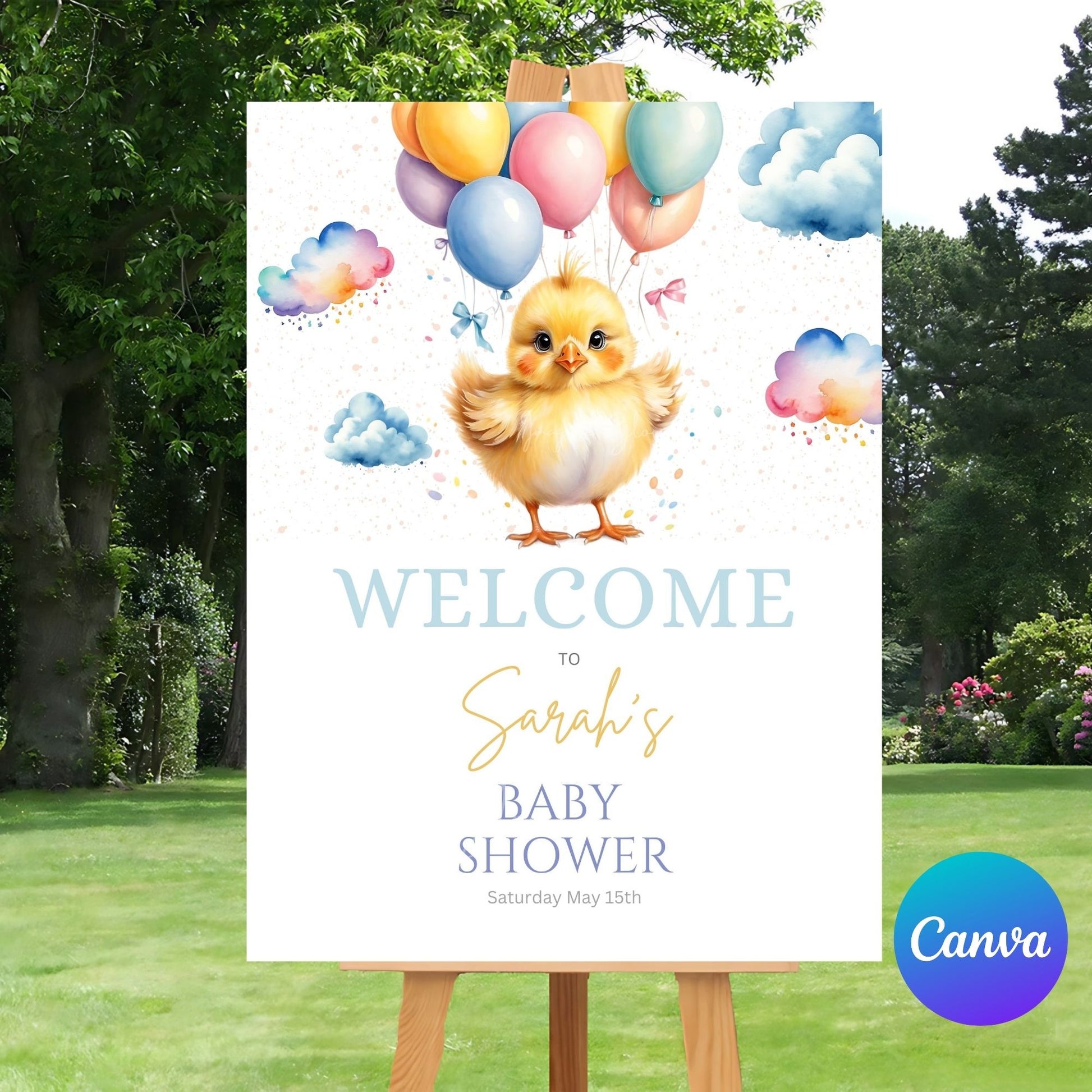 Baby Shower Welcome Sign Canva Template - Editable Chick Baby Shower Poster