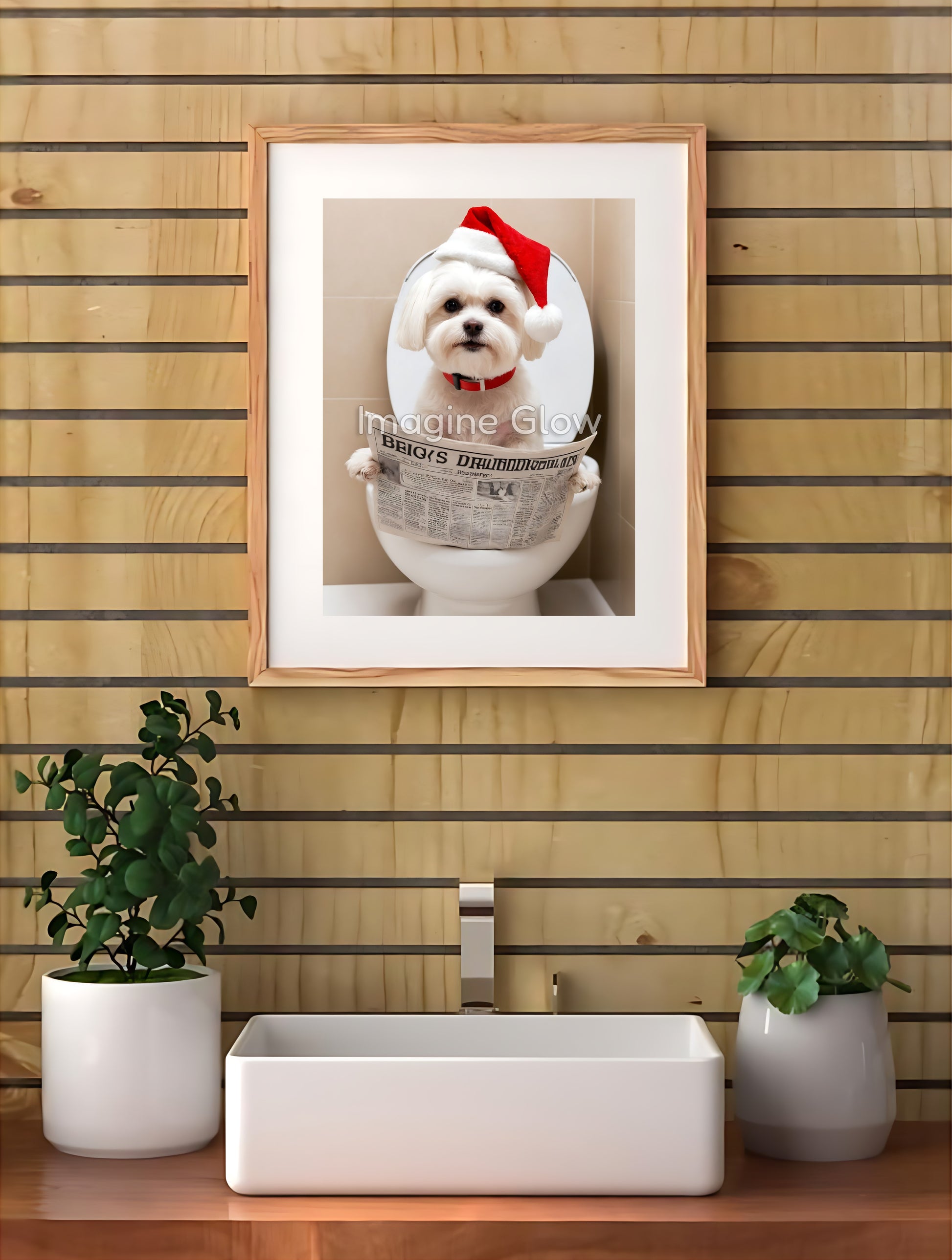 Add a touch of humor to your bathroom this Christmas with our playful print of a Maltese Dog in a toilet. This lighthearted design is perfect for dog lovers and those seeking unique and festive wall decor.