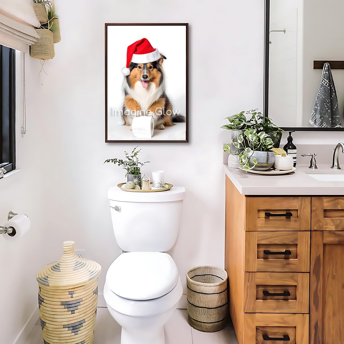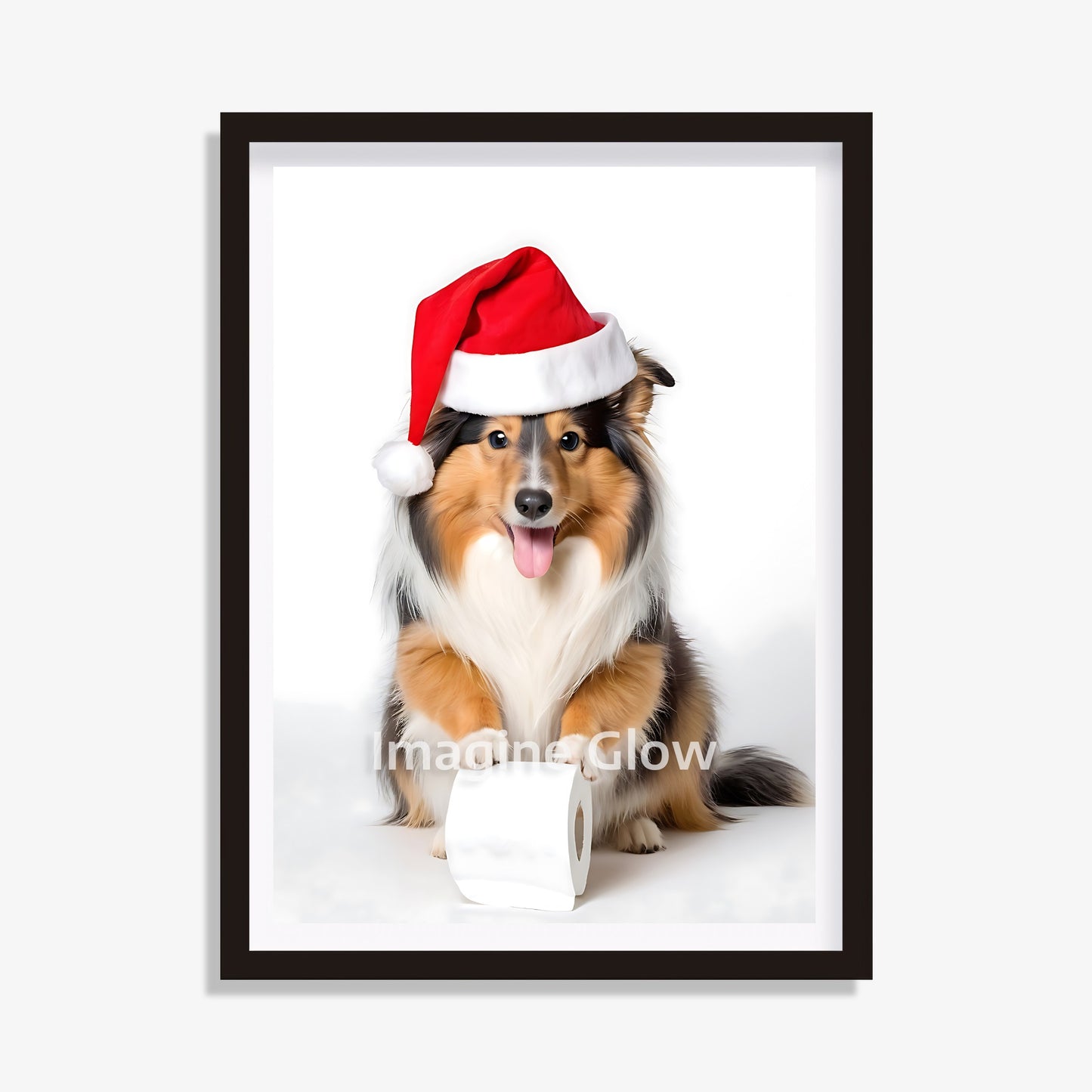Add some humor to your bathroom this holiday season with this Collie Dog in the Toilet printable Christmas art. This funny and festive design is perfect for quirky and playful bathroom decor.