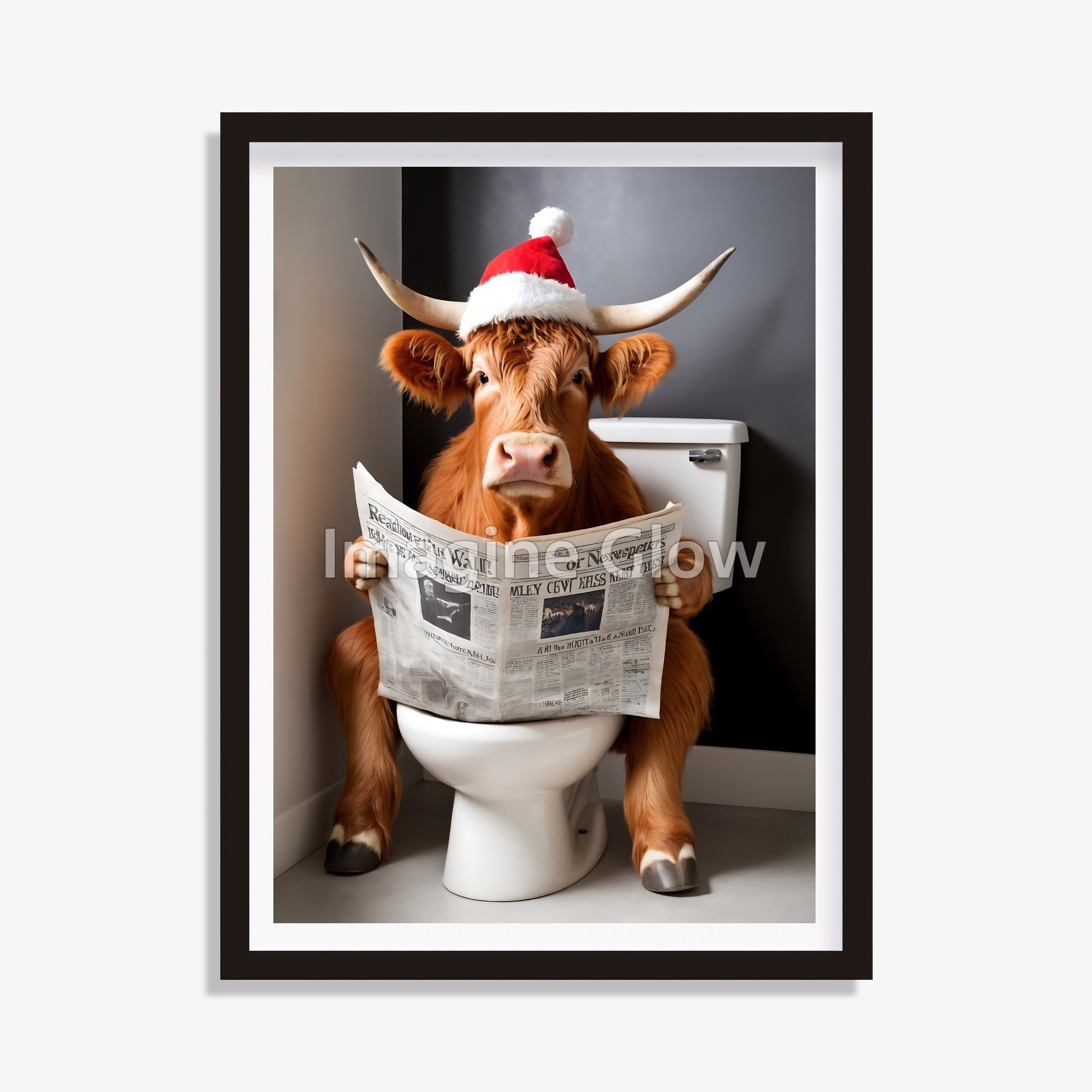 Add a touch of festive fun to your bathroom with this Highland Cattle in Toilet printable Christmas decor. This quirky design brings humor and holiday cheer to your space.
