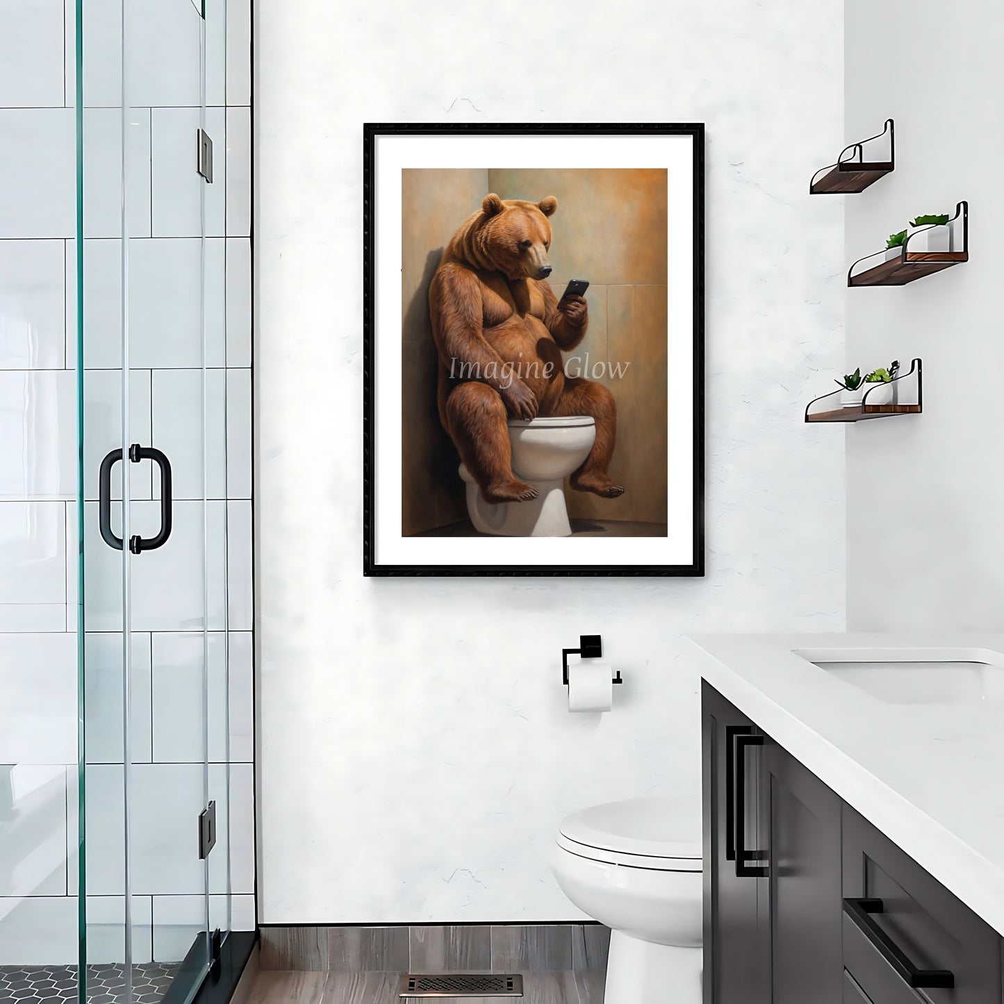Bring a touch of humor to your bathroom with this Bear in Toilet printable wall art. Ideal for adding a whimsical and quirky element to your bathroom decor.