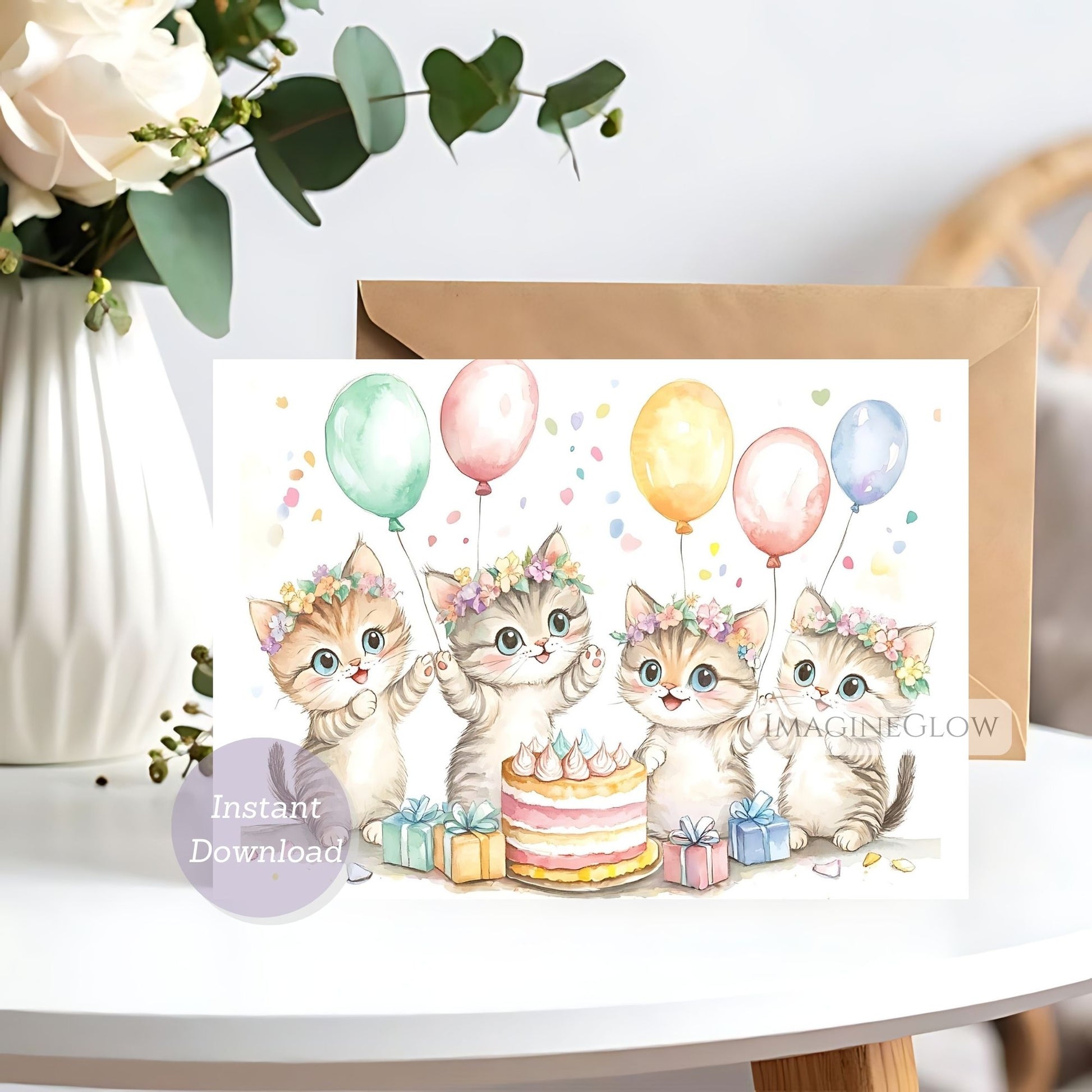 Whether you’re gifting it to a cat enthusiast, a friend who loves nature, or someone who simply appreciates thoughtful design, this card delivers a perfect blend of cuteness and sophistication. The floral background adds a soft, decorative touch, making the card suitable for both kids and adults, and ideal for spring, summer, or garden-themed birthdays.