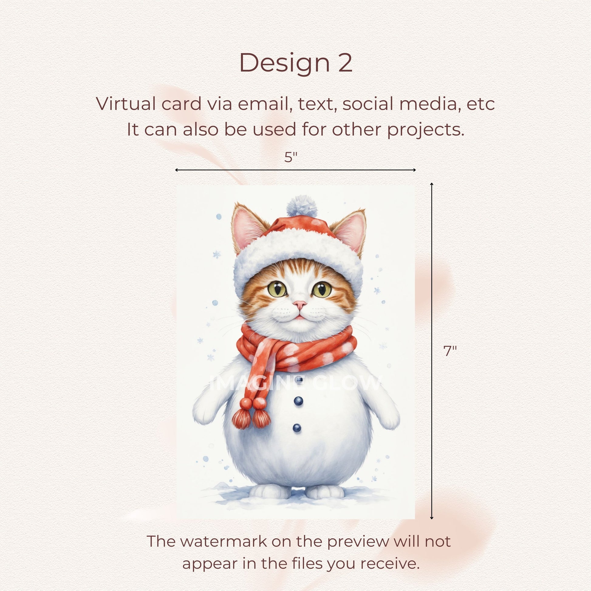 Cat Christmas Card Set E – Printable Pet Greeting Cards – Set of 11 Holiday Cards