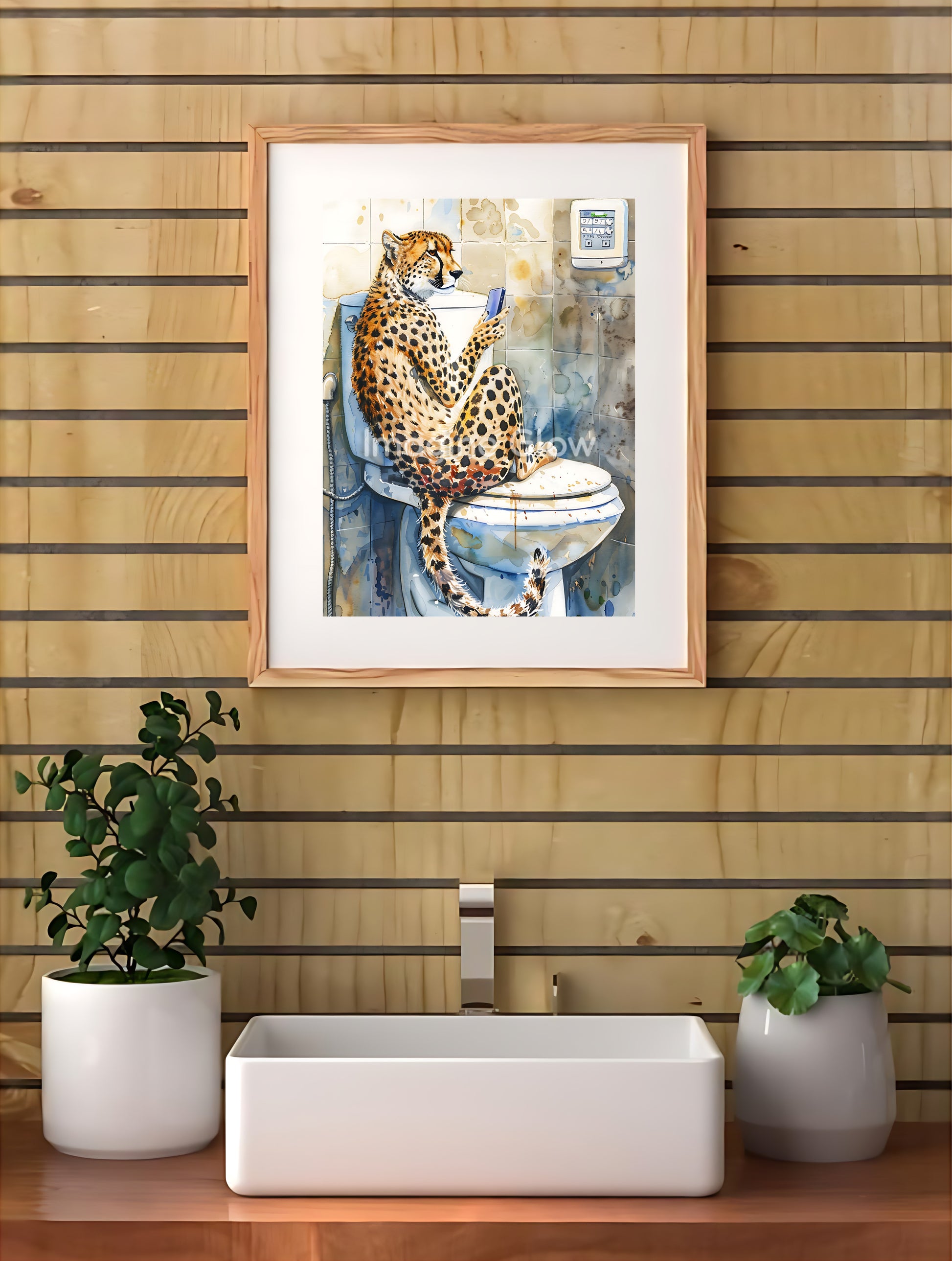 Cheetah in Toilet - Bathroom Printable Wall Art