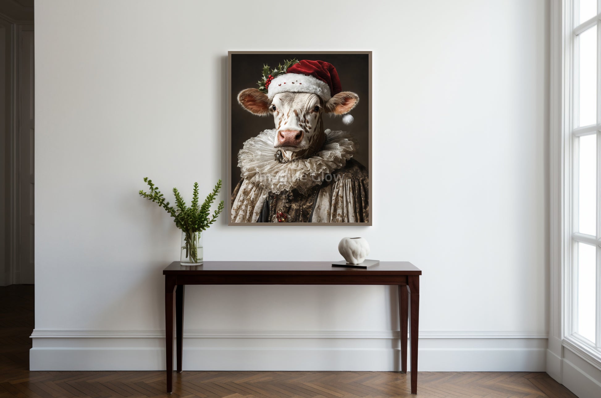 Celebrate the festive season with this stunning Renaissance Cow Portrait. Perfect for adding a unique touch to your holiday decor, this printable art piece combines classic elegance with a cheerful holiday