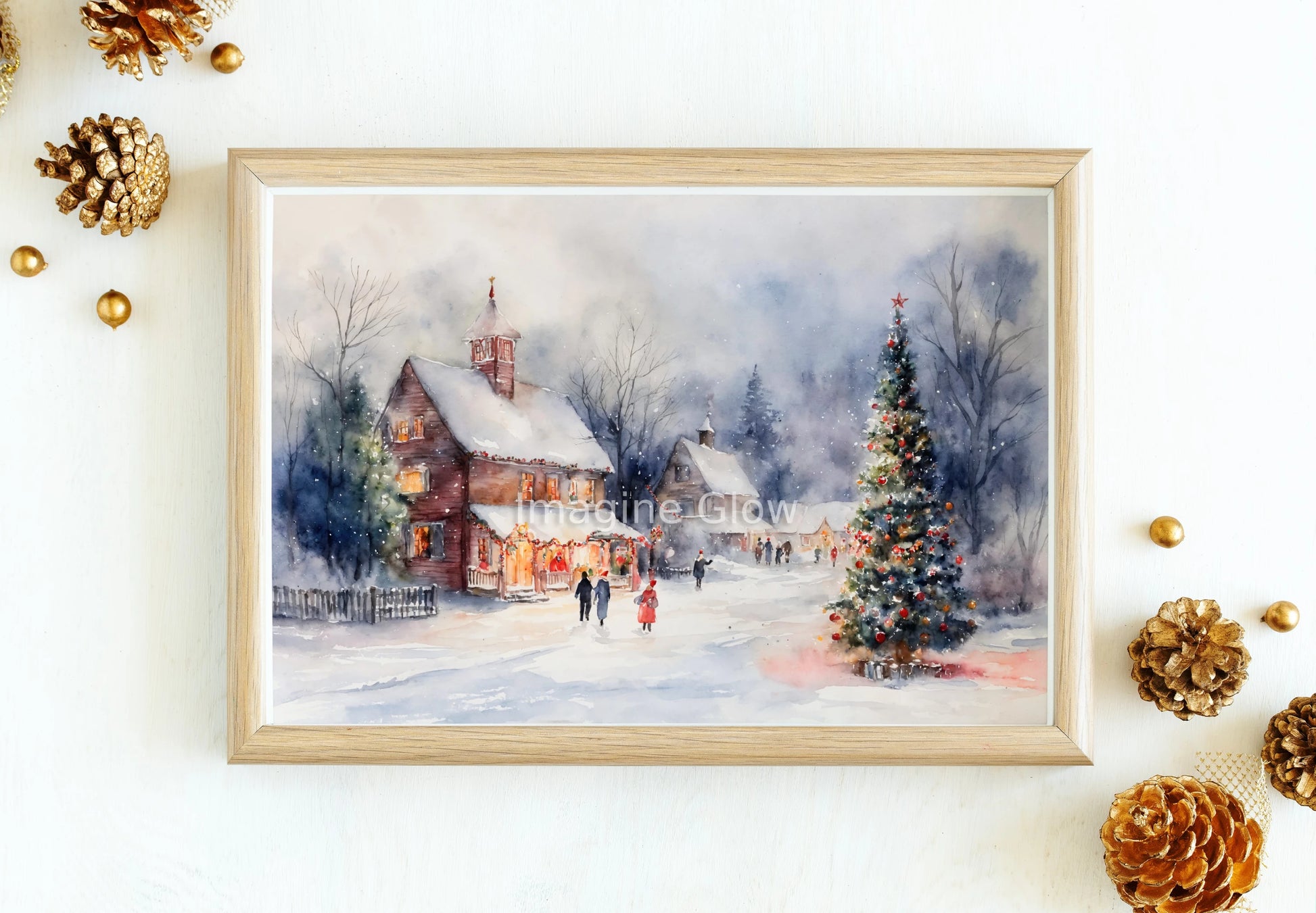 Christmas Village Art Printable - Festive Wall Decor for Holiday Ambiance