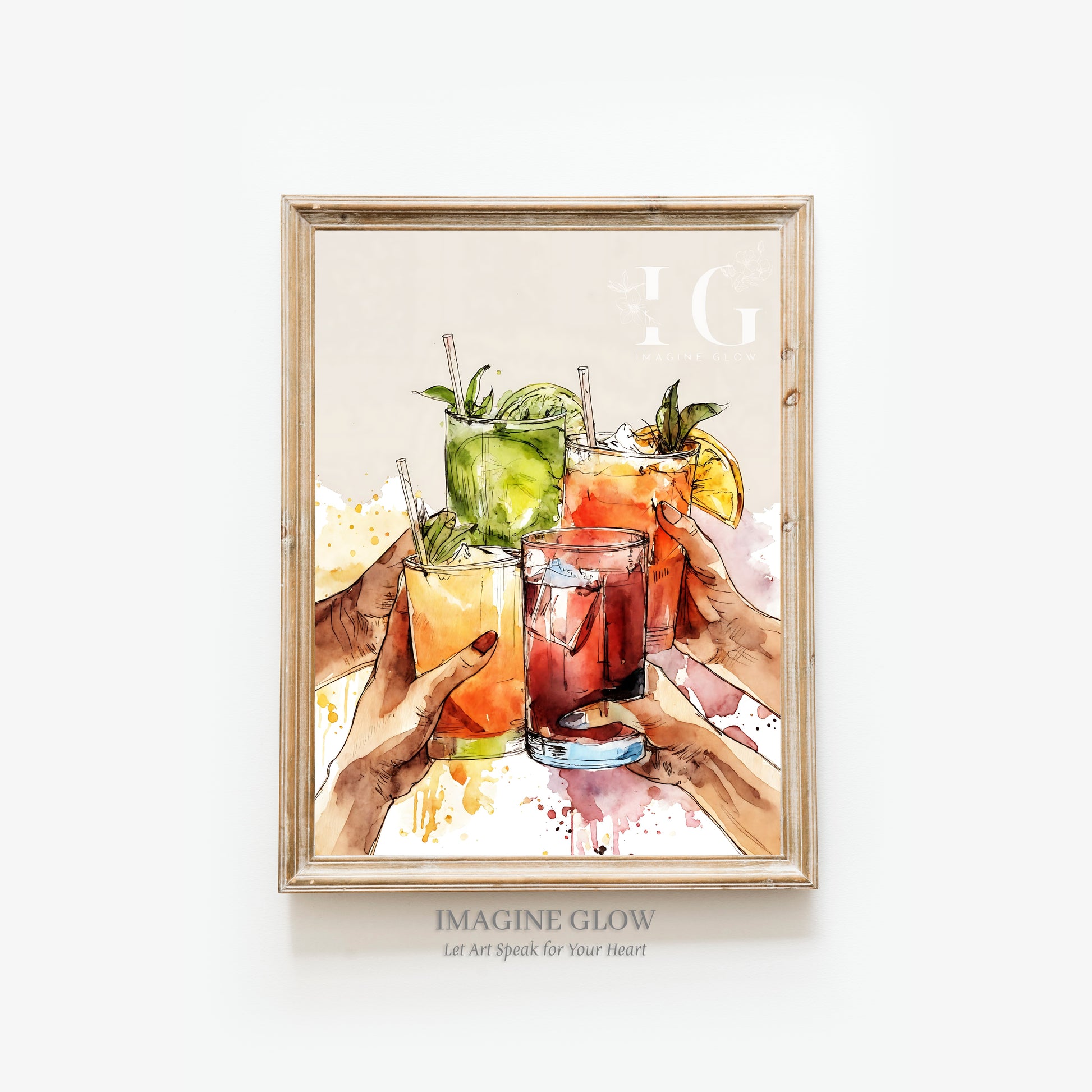 Cocktail Lovers Art Printable - Vibrant Party Wall Decor for Entertainers