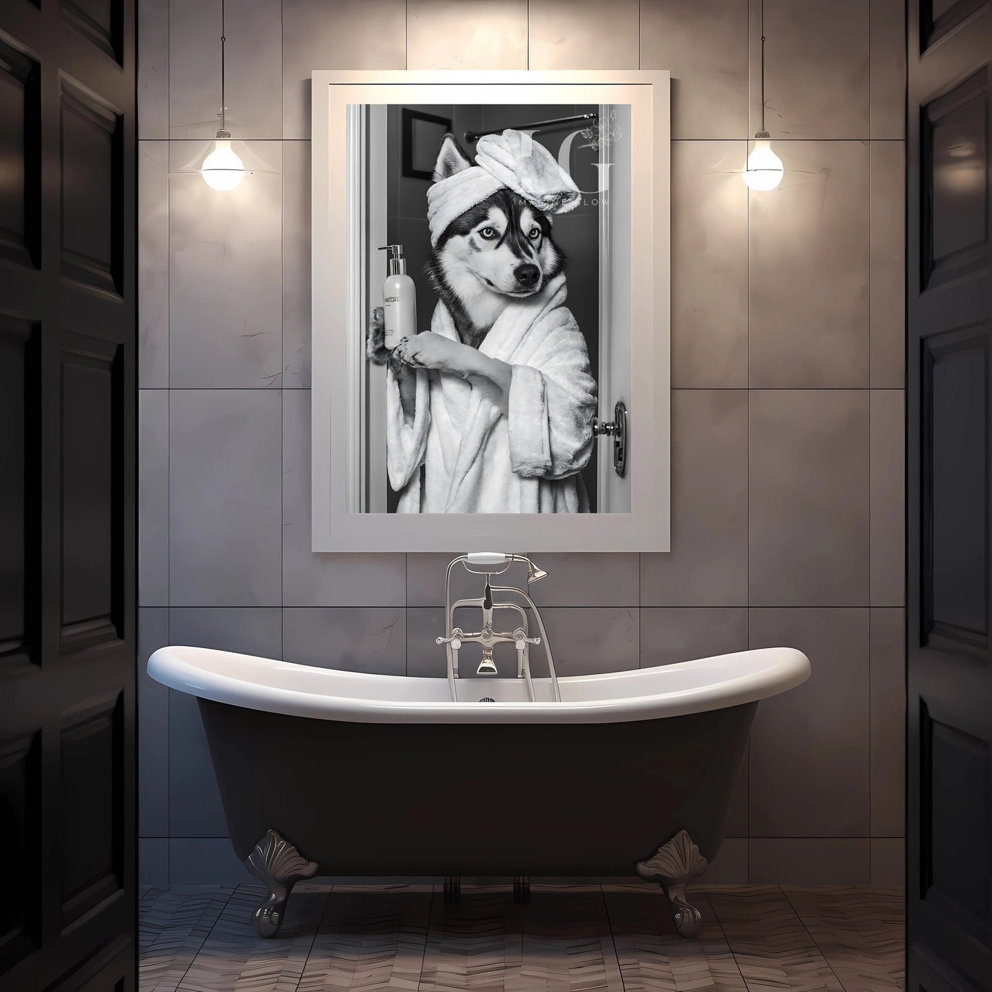Bring a playful touch to your bathroom decor with this humorous Husky dog in toilet artwork! This black and white design captures a quirky, lighthearted scene, ideal for dog lovers with a sense of humor. Available as an easy-to-print digital download, this unique wall art is perfect for creating a fun atmosphere in any restroom. It also makes a thoughtful gift for pet lovers or those who appreciate a little bathroom humor!