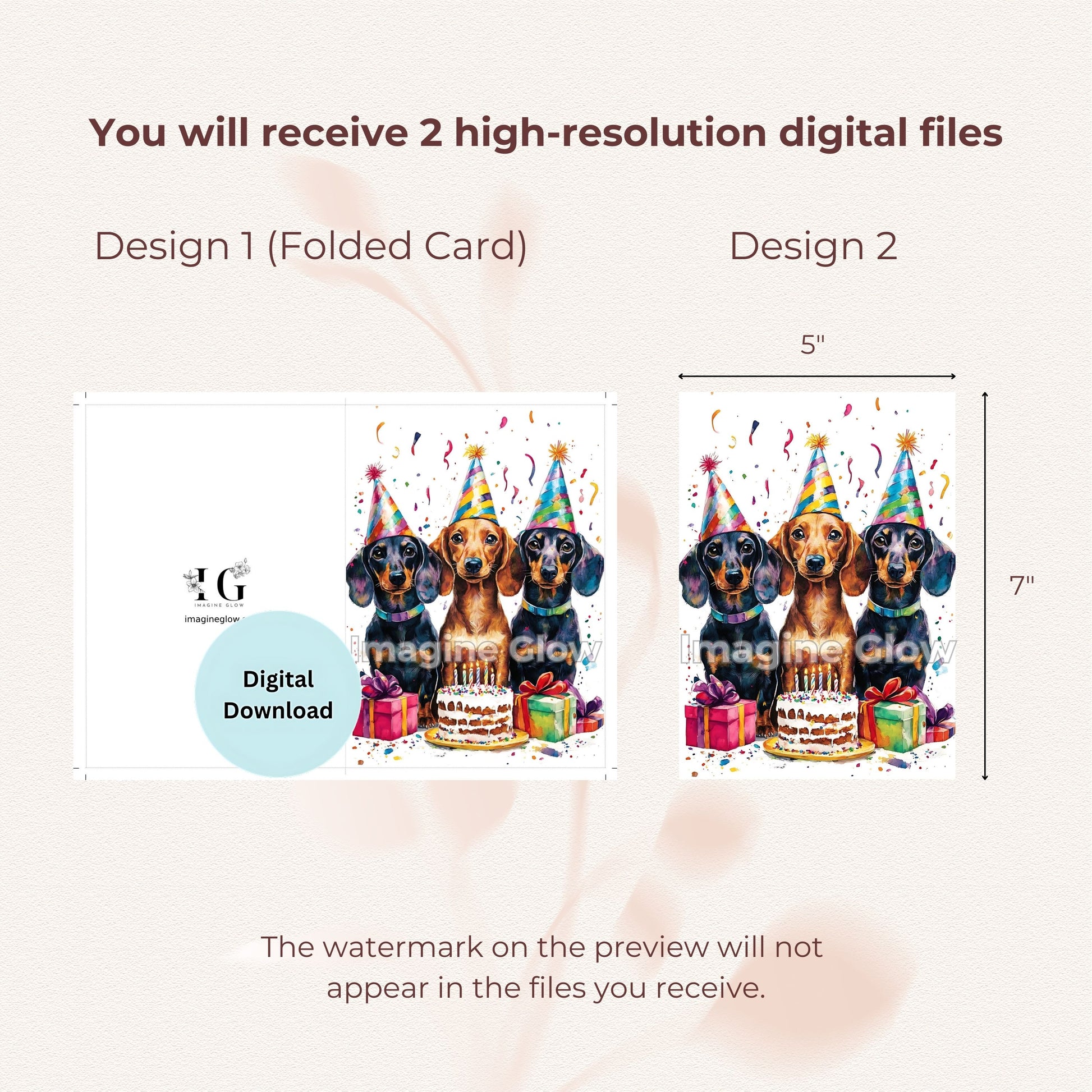 Celebrate the special day of a dog lover with this delightful Dachshund birthday card! Adorned with a playful illustration of a charming dachshund, this card is perfect for adding a touch of whimsy to any birthday party. Its vibrant colors and heartwarming design make it an ideal choice for conveying your warm wishes. Available as an instant digital download, you can easily print it at home to create a personalized birthday greeting that is sure to bring smiles.