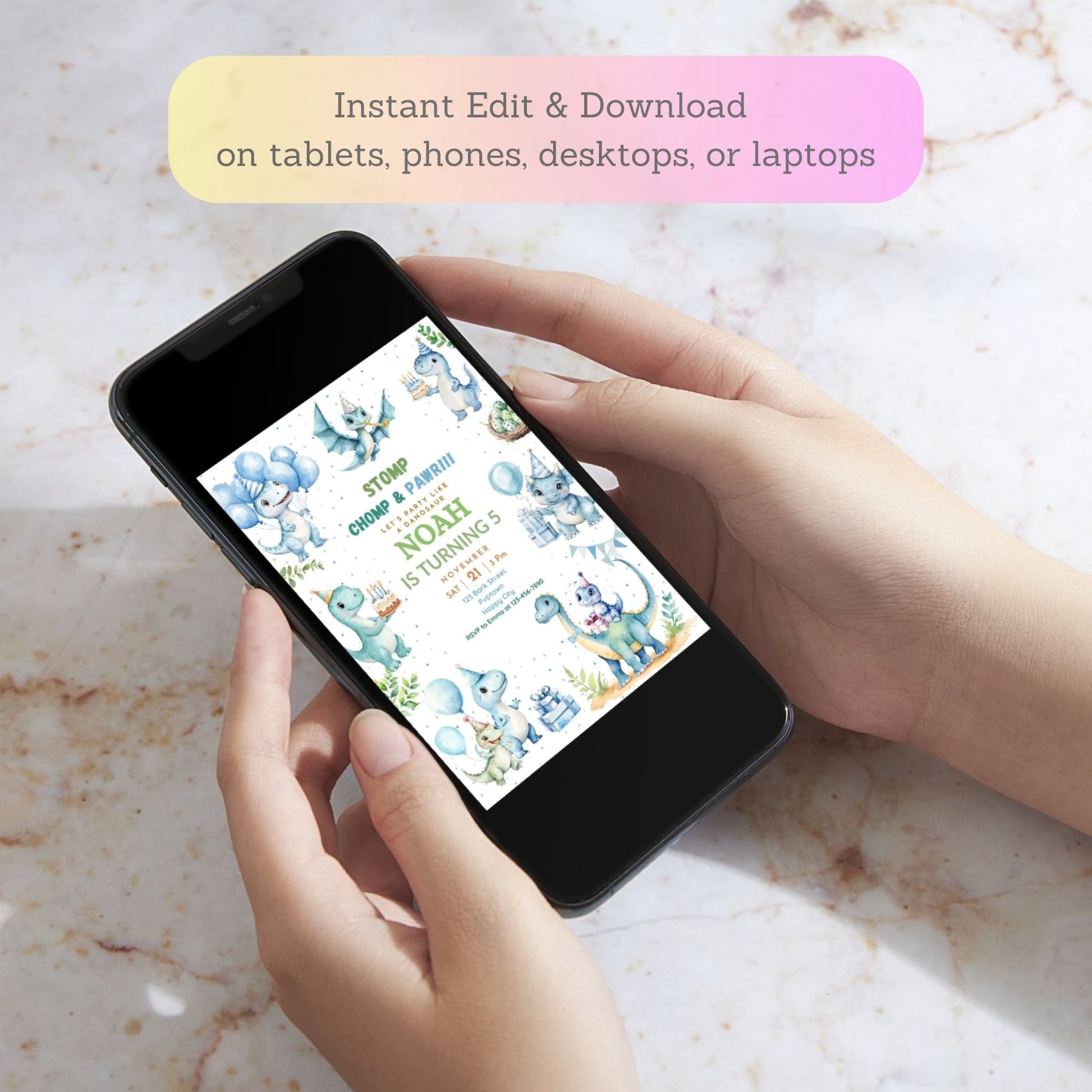 Get ready for an unforgettable birthday party with this Dinosaur Birthday Invitation, designed specifically for kids who love these prehistoric creatures! Perfect for a fun and exciting dinosaur-themed birthday bash, this editable invitation features vibrant, colorful illustrations of T-Rex, triceratops, and other friendly dinosaurs. Ideal for kids who are fascinated by the Jurassic world, this invitation brings the adventure of a dino-filled celebration right to your door.
