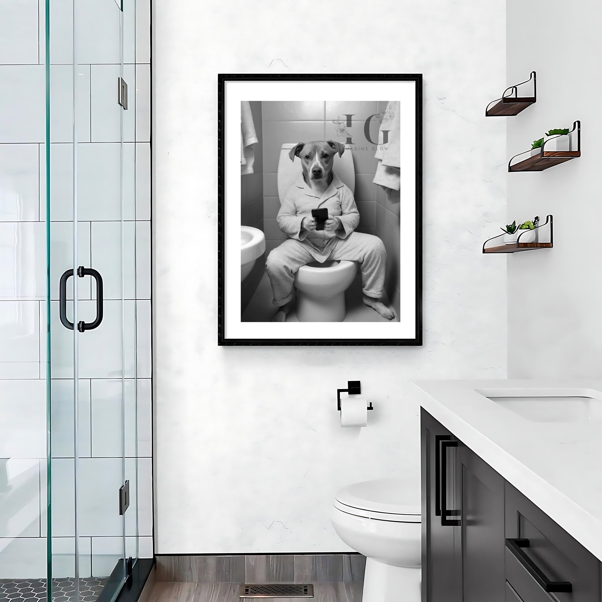 Dog Playing Phone in Toilet Printable - Comical Bathroom Wall Decor