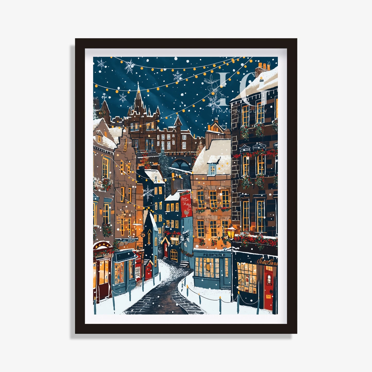 Edinburgh Christmas Street Art Print - Festive Wall Decor - Holiday Cityscape Printable
