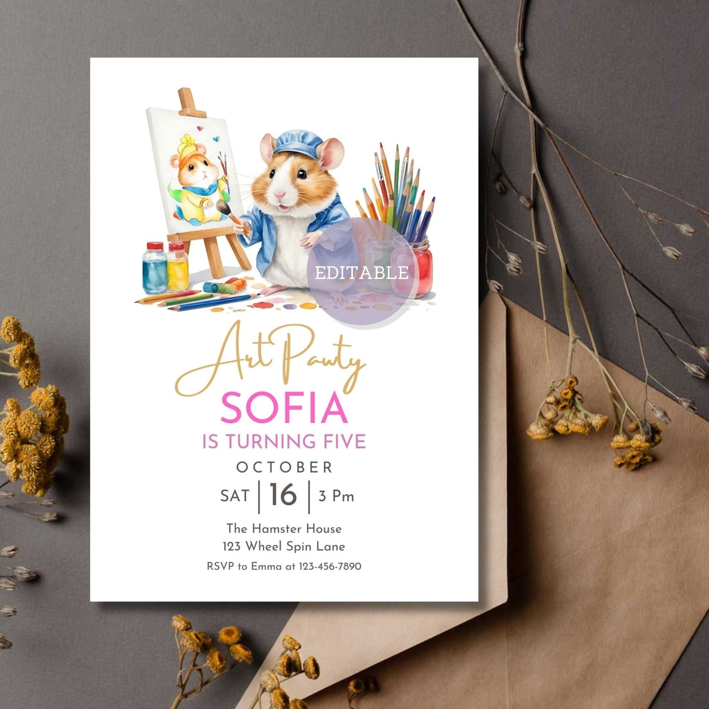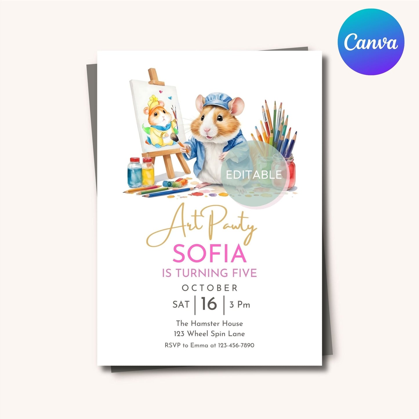 Editable Art Party Invitation Template - Printable Hamster Birthday - Mobile Invitation - Customize with Canva