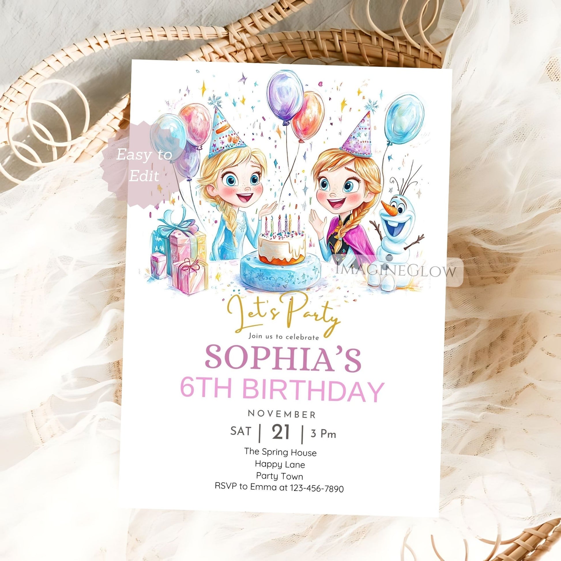 Easy to download, print, or send digitally—this design offers convenience and style for busy parents and Frozen fans alike. A delightful way to invite guests to a magical celebration filled with snow, sparkle, and adventure!