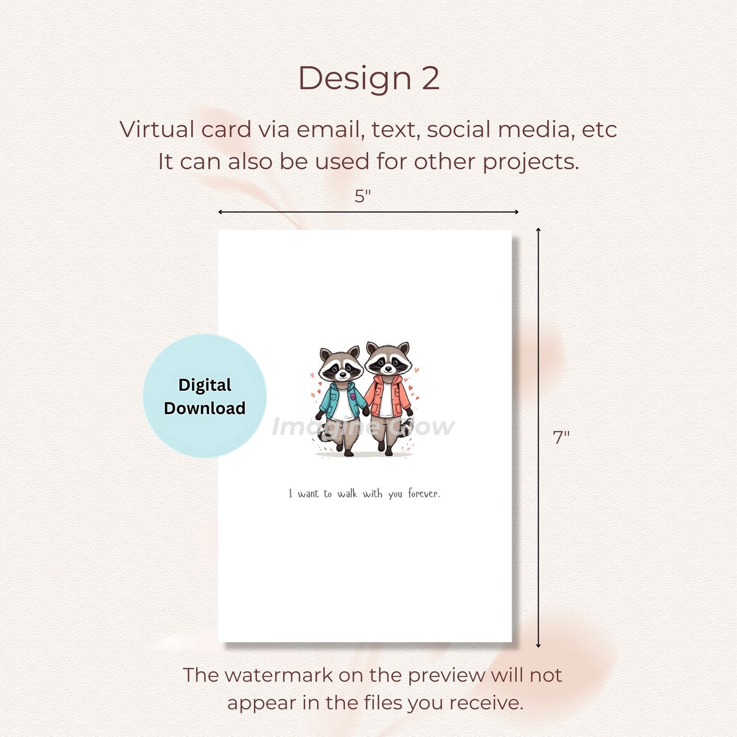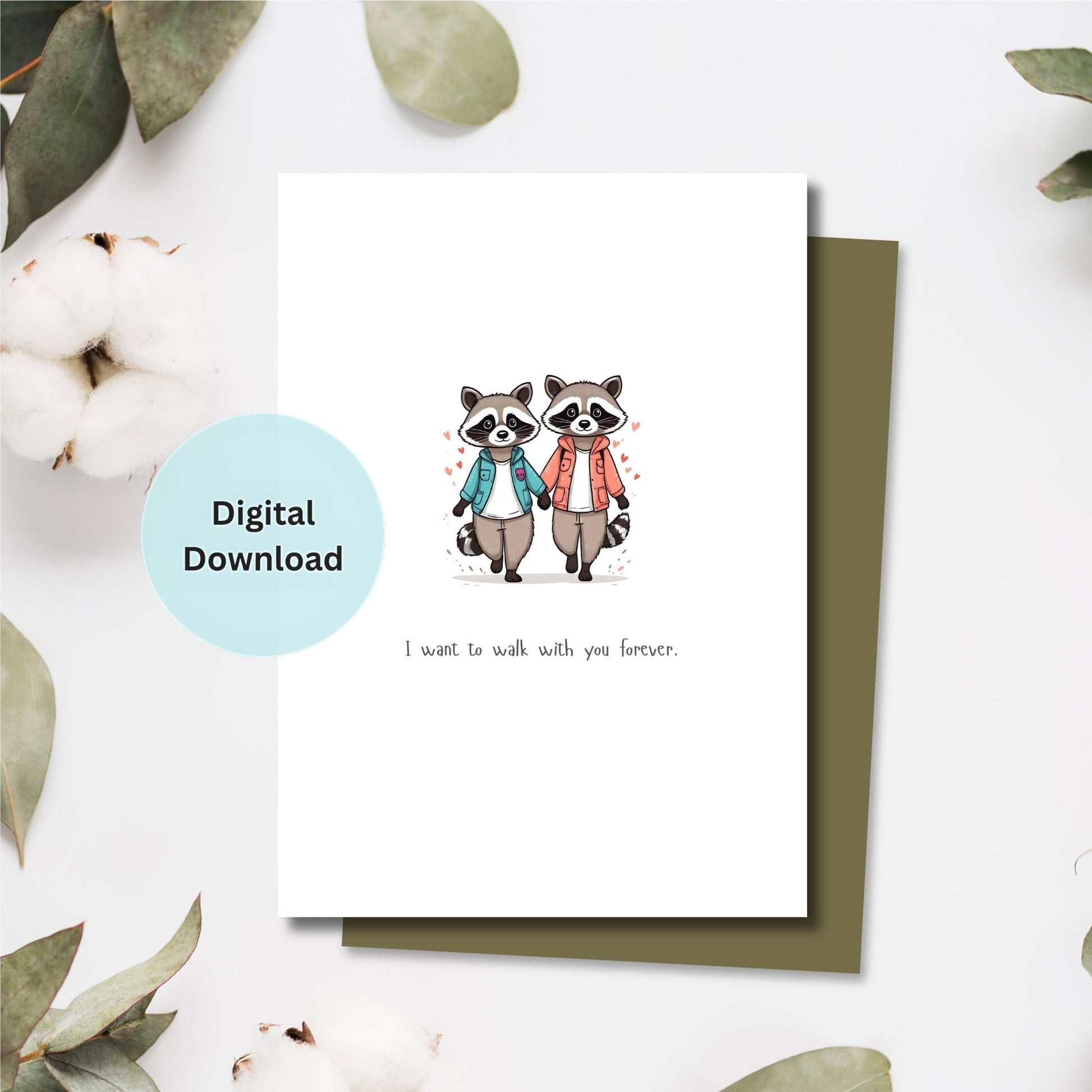 Forever Love Card Printable - Raccoon Valentine Card - Anniversary Card