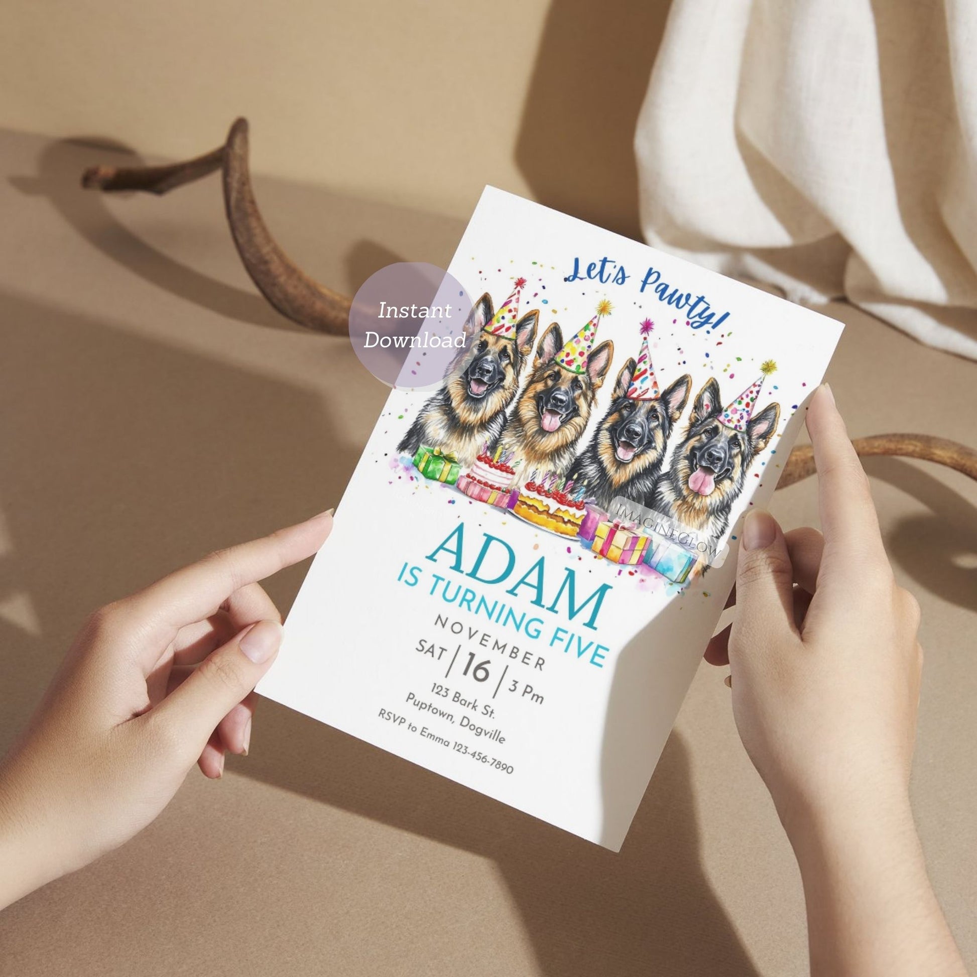German Shepherd Dog Birthday Invitation Template - Editable Dog Party Invite - Printable Canva Design