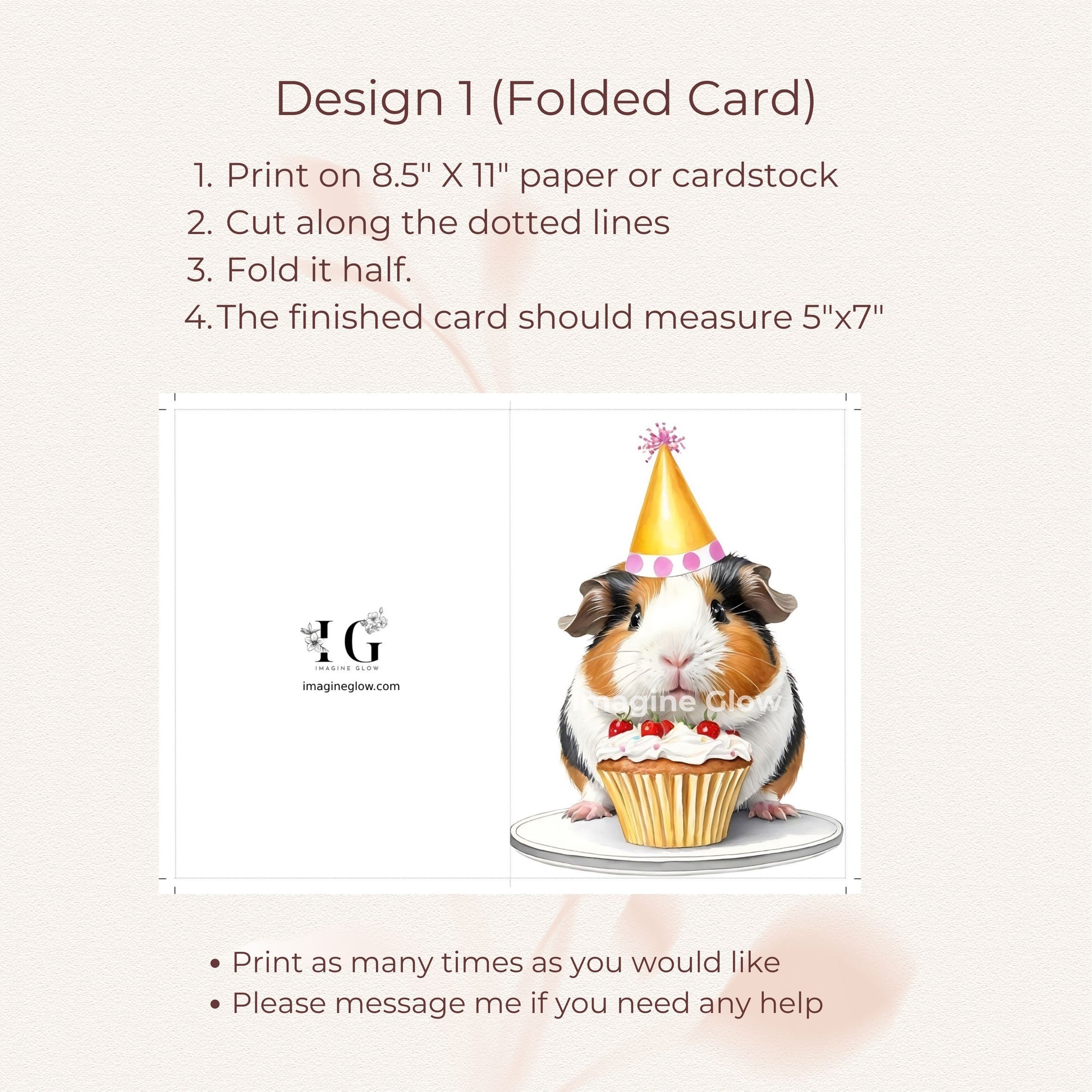 Celebrate a special day with this adorable "Guinea Pig Birthday Card." Featuring a cute guinea pig, this printable animal-themed card is perfect for sending warm wishes to a guinea pig lover. The charming design adds a personal touch to any birthday celebration, making it ideal for pet lovers and animal enthusiasts. Download and print this unique card to brighten someone's birthday with a delightful and fun message.