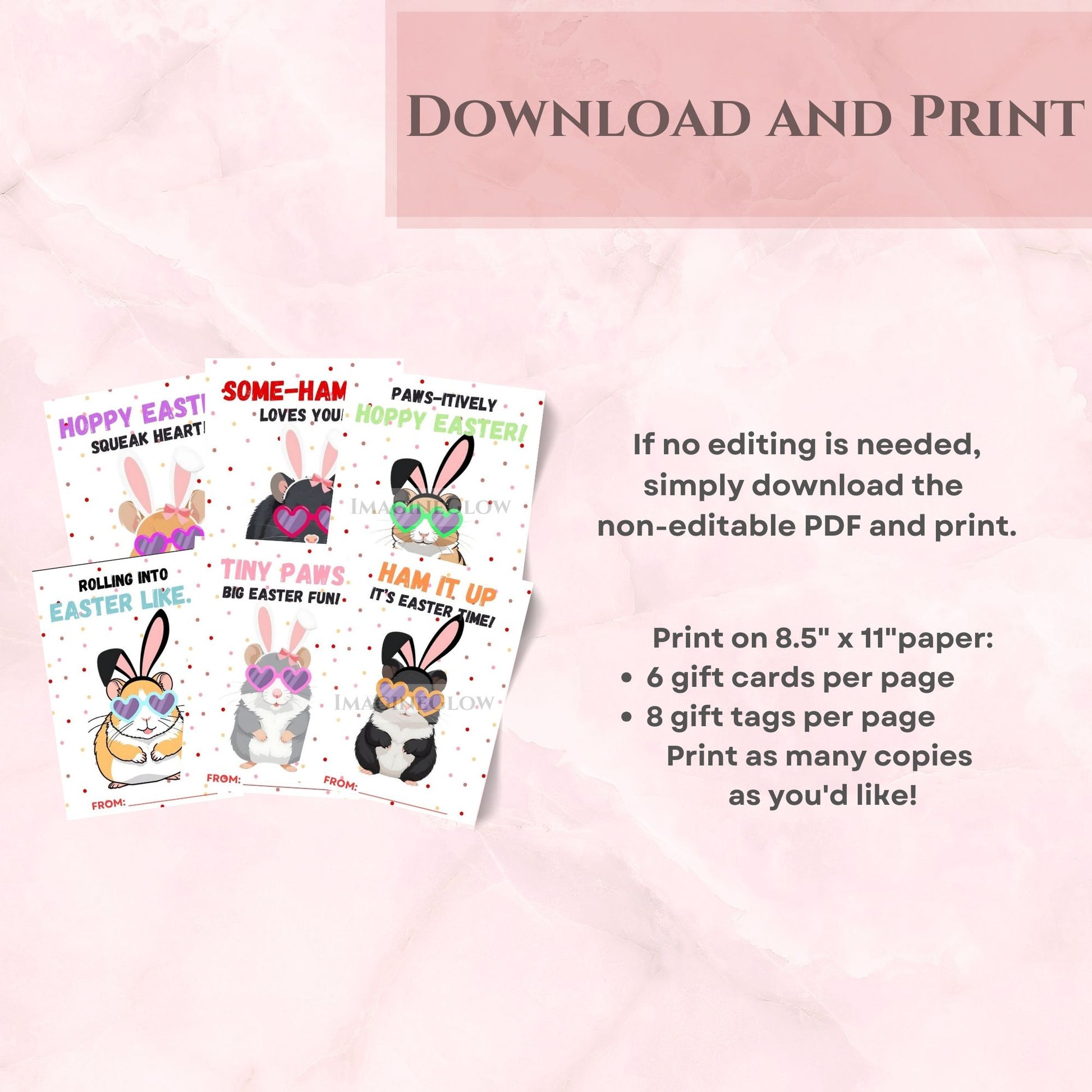 Make Easter extra special with these adorable Hamster Easter Cards! Perfect for classroom gift tags, Easter basket goodies, or springtime greetings, these cute and festive cards add a delightful touch to your holiday gifts.