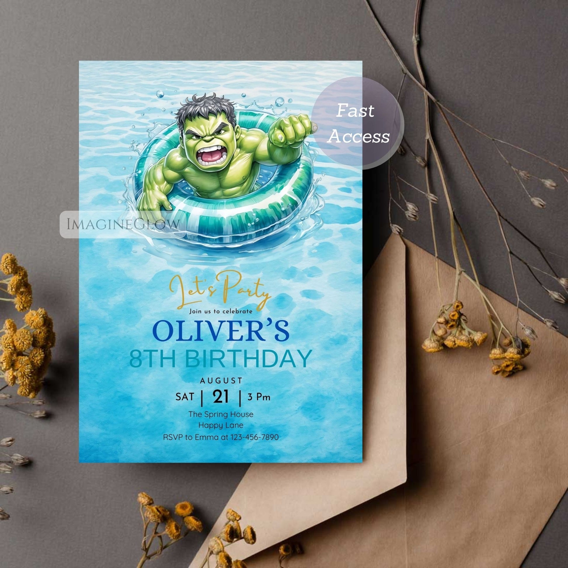 Hulk Pool Party Birthday Invitation – Superhero Summer Invite Editable