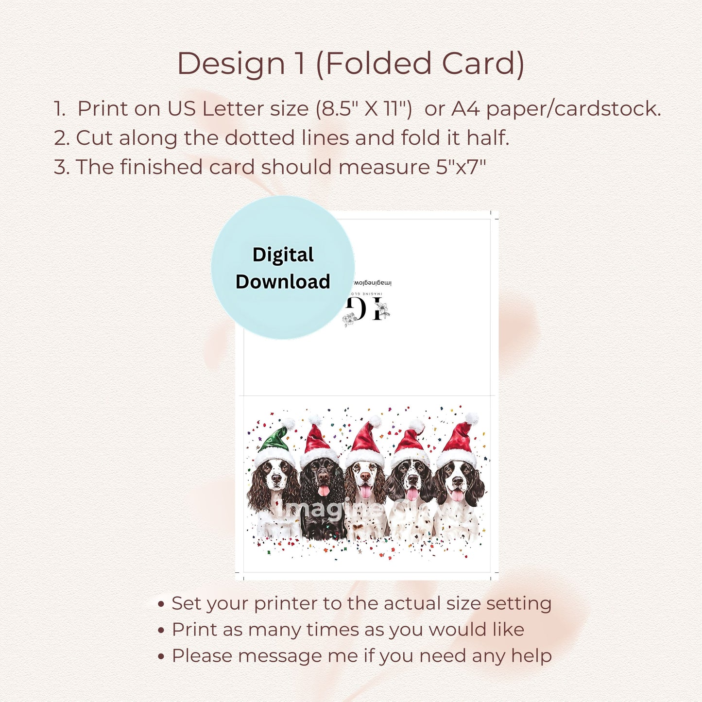 English Springer Spaniel Dogs Christmas Card Printable - Festive Dog Card for Holiday Greetings