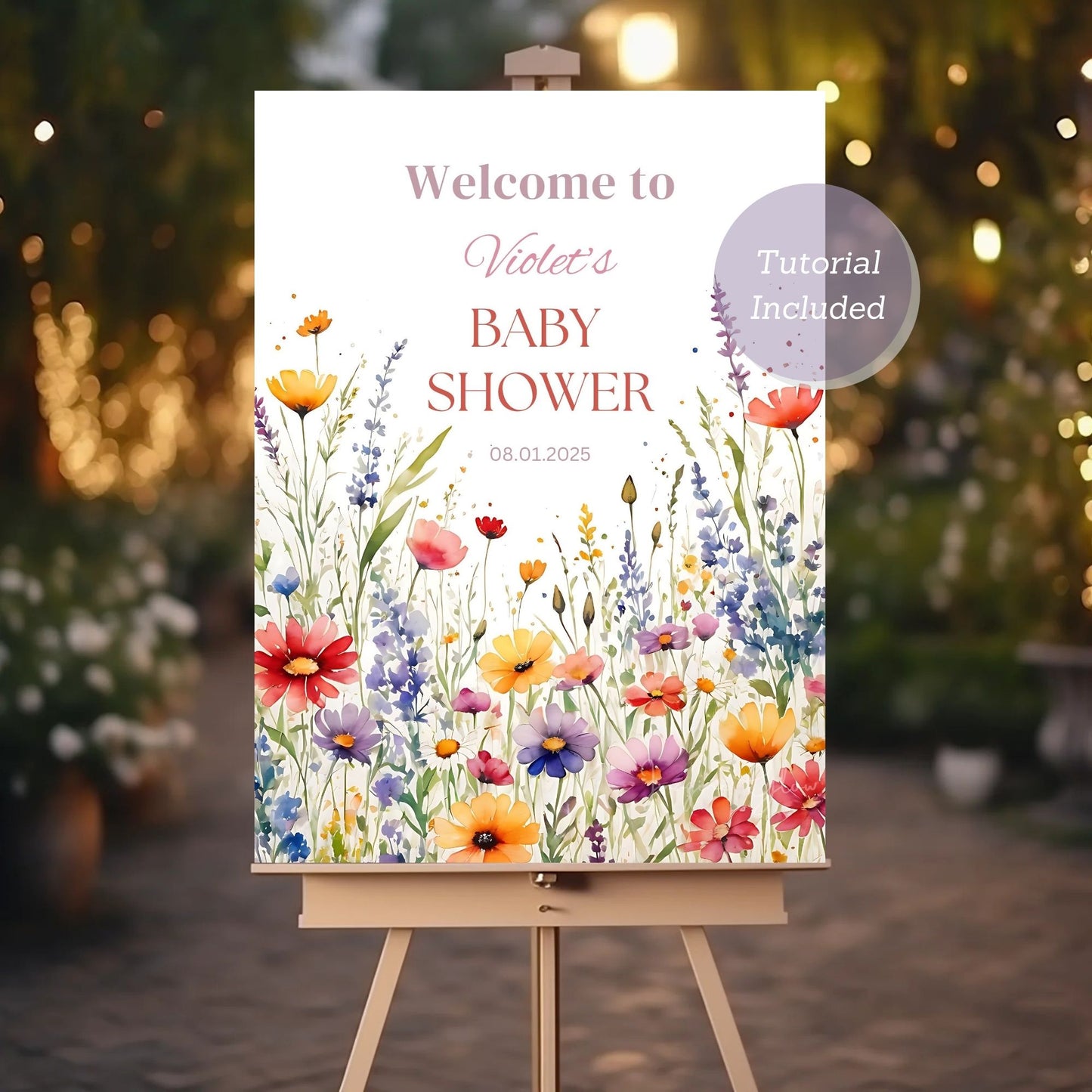 Little Blossom Baby Shower Welcome Sign - Editable Floral Baby Shower Decor - Personalized Party Poster