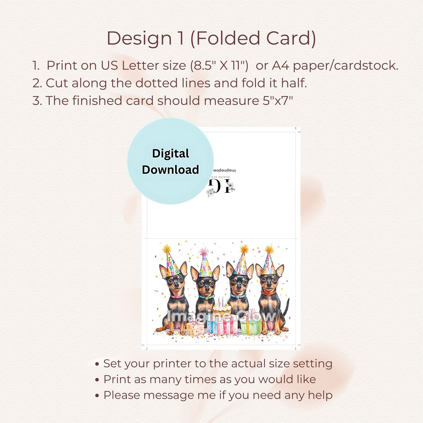 Miniature Pinscher Dogs Birthday Card Printable - Cute Pet Greeting Card
