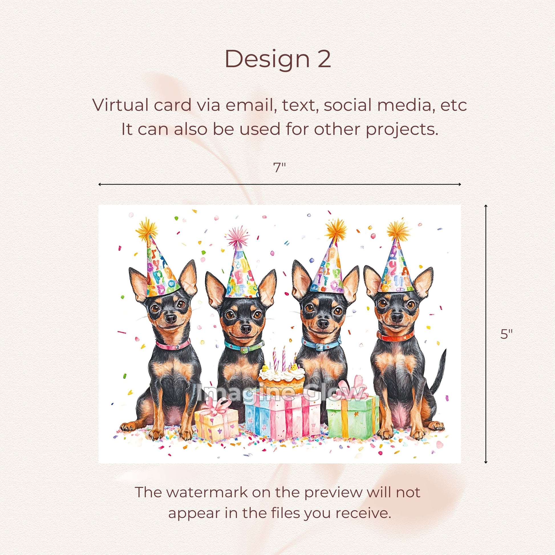 Celebrate birthdays in style with this delightful Miniature Pinscher dog birthday card! Featuring a cute illustration of a lively Miniature Pinscher, this card is perfect for dog lovers and anyone looking to add a personal touch to their birthday wishes. Whether it's for a friend or family member, this card radiates joy and cheer, making it an ideal choice for any birthday party. Available as an instant digital download, you can print it at home for a quick and easy way to celebrate those special moments.