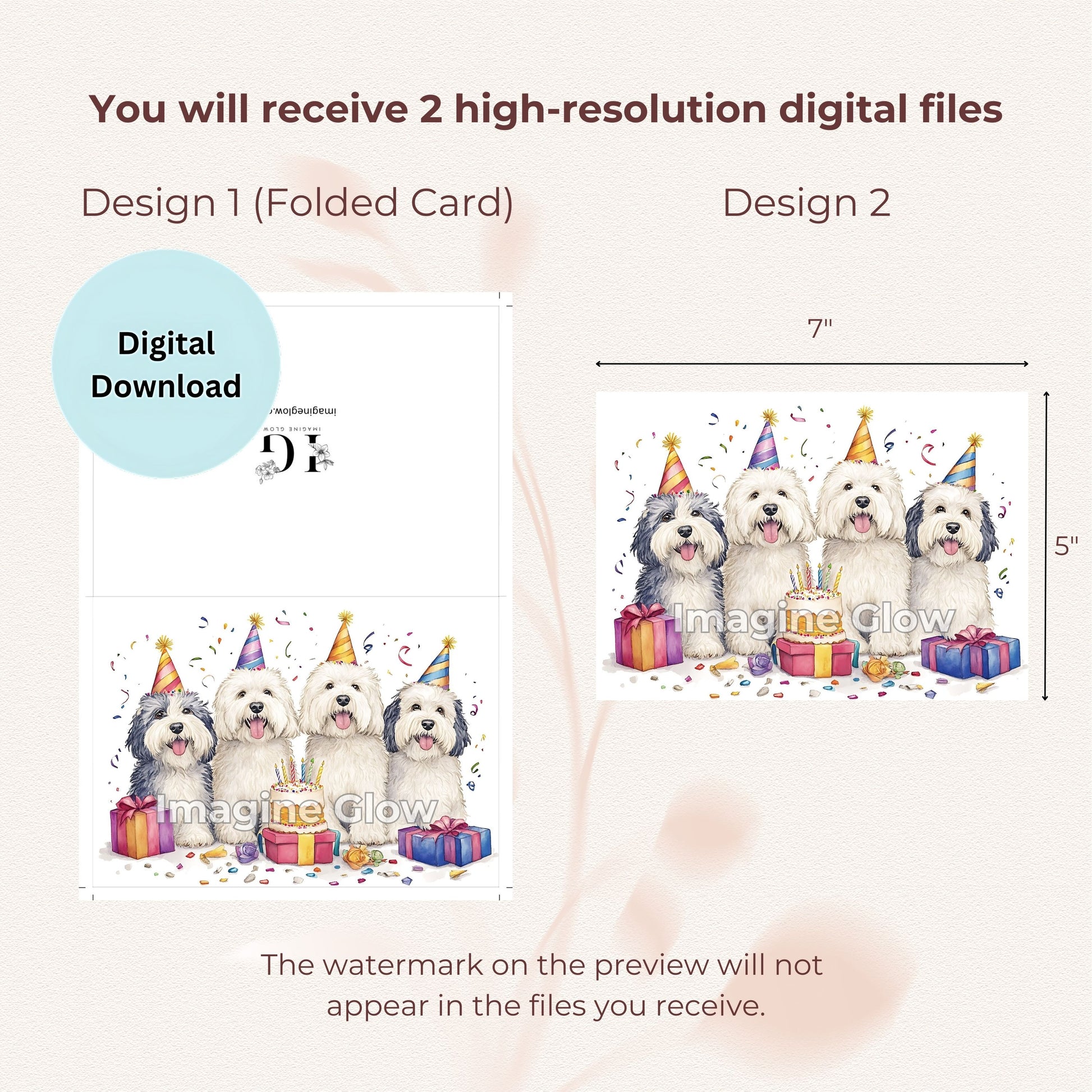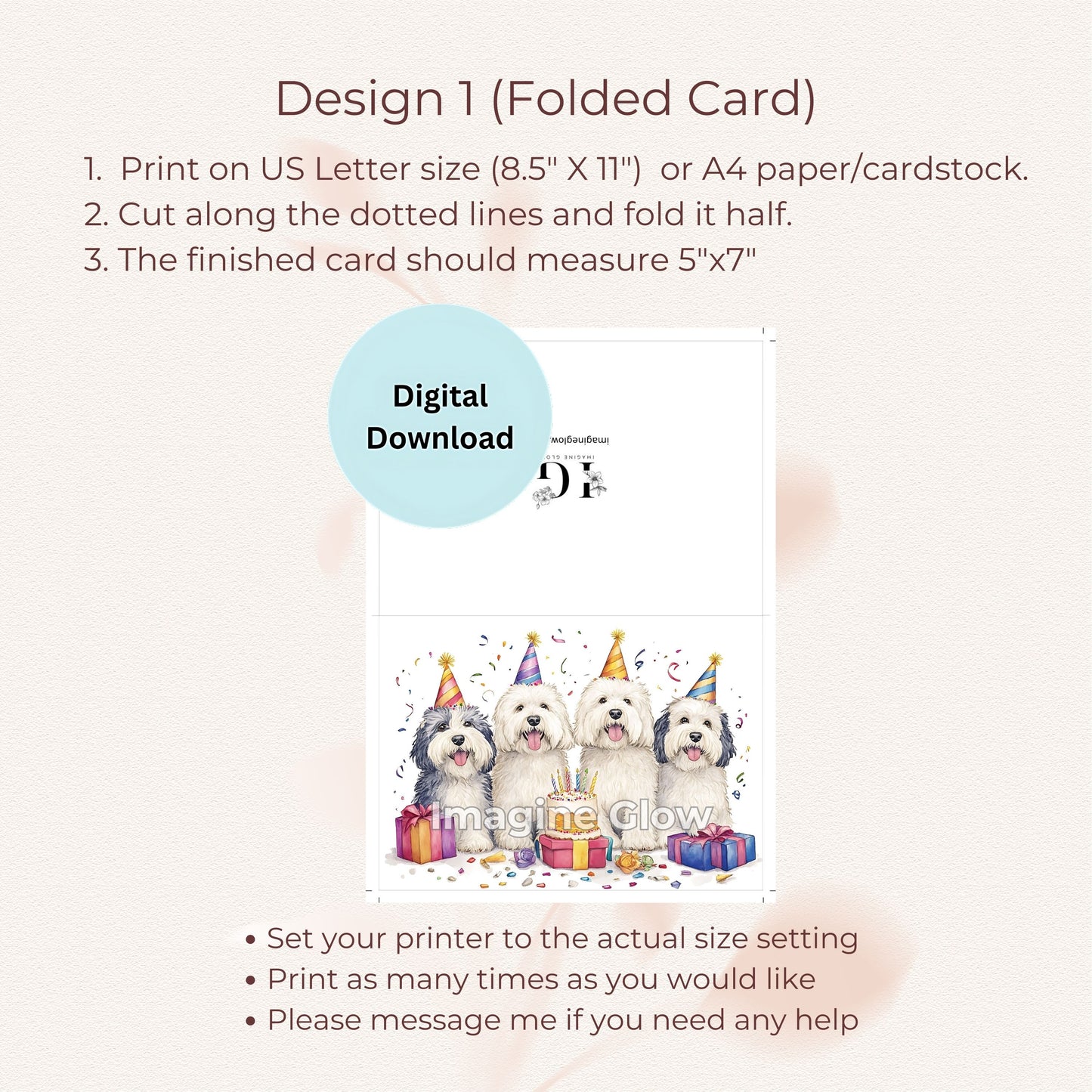 Old English Sheepdog Birthday Card Printable - Cute Pet Greeting Card