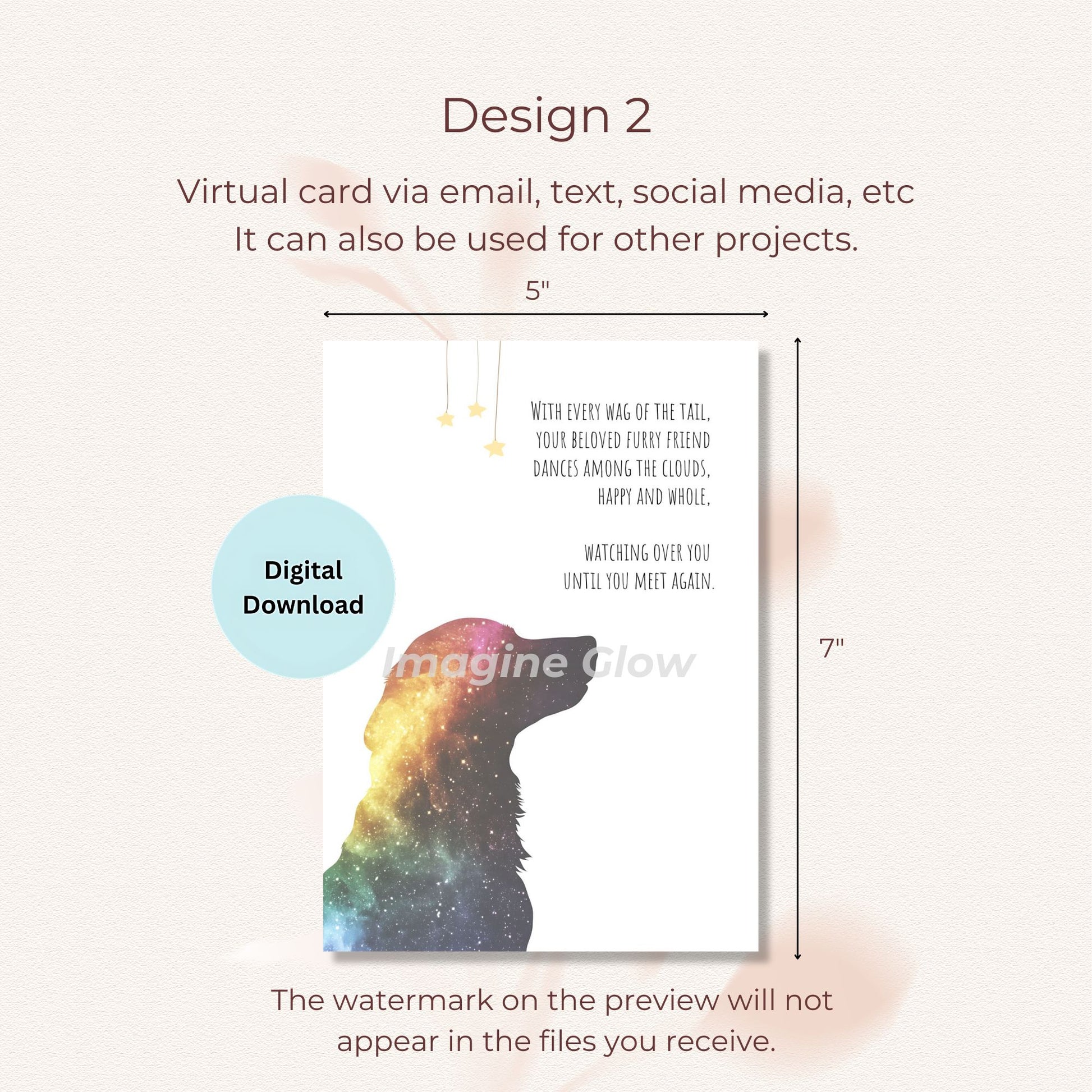 Offer comfort and support with this heartfelt pet loss sympathy card. Perfect for expressing condolences to those grieving the loss of a beloved dog, this card features a touching design inspired by the Rainbow Bridge. It's a meaningful keepsake for anyone facing the sorrow of losing a furry friend. This card serves as a heartfelt reminder of the special bond shared with a beloved pet and offers solace during a difficult time.