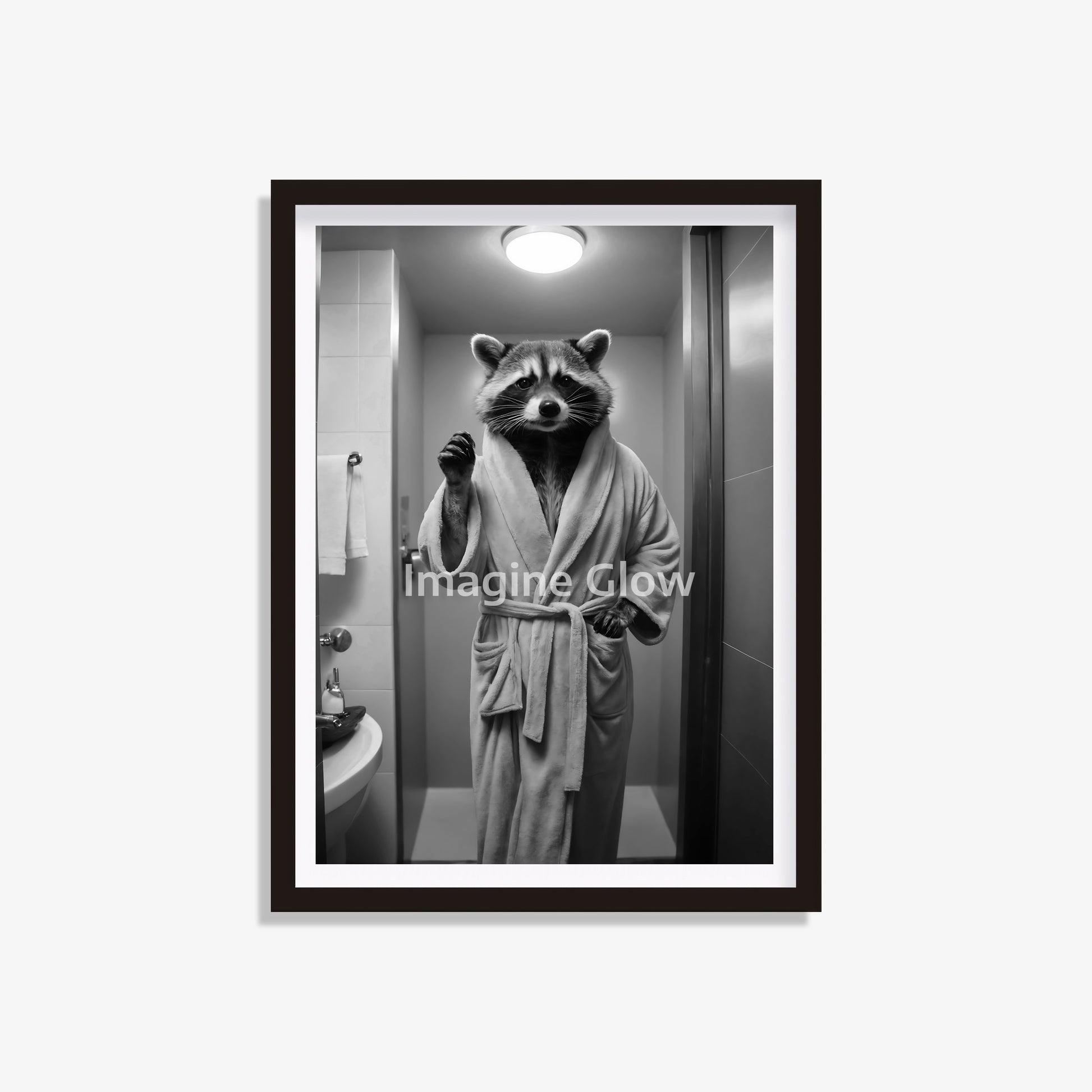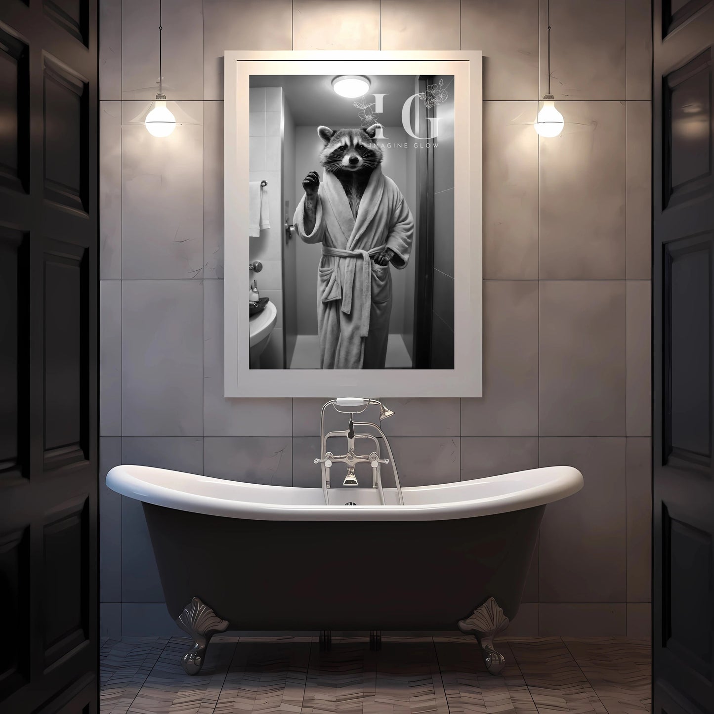 Raccoon in Bathrobe Printable - Quirky Bathroom Wall Decor