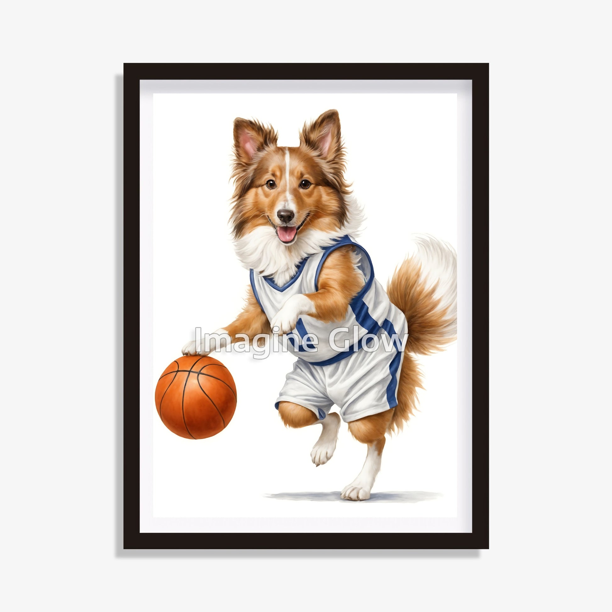Rough Collie Basketball Art - Shetland Sheepdog Sport Decor