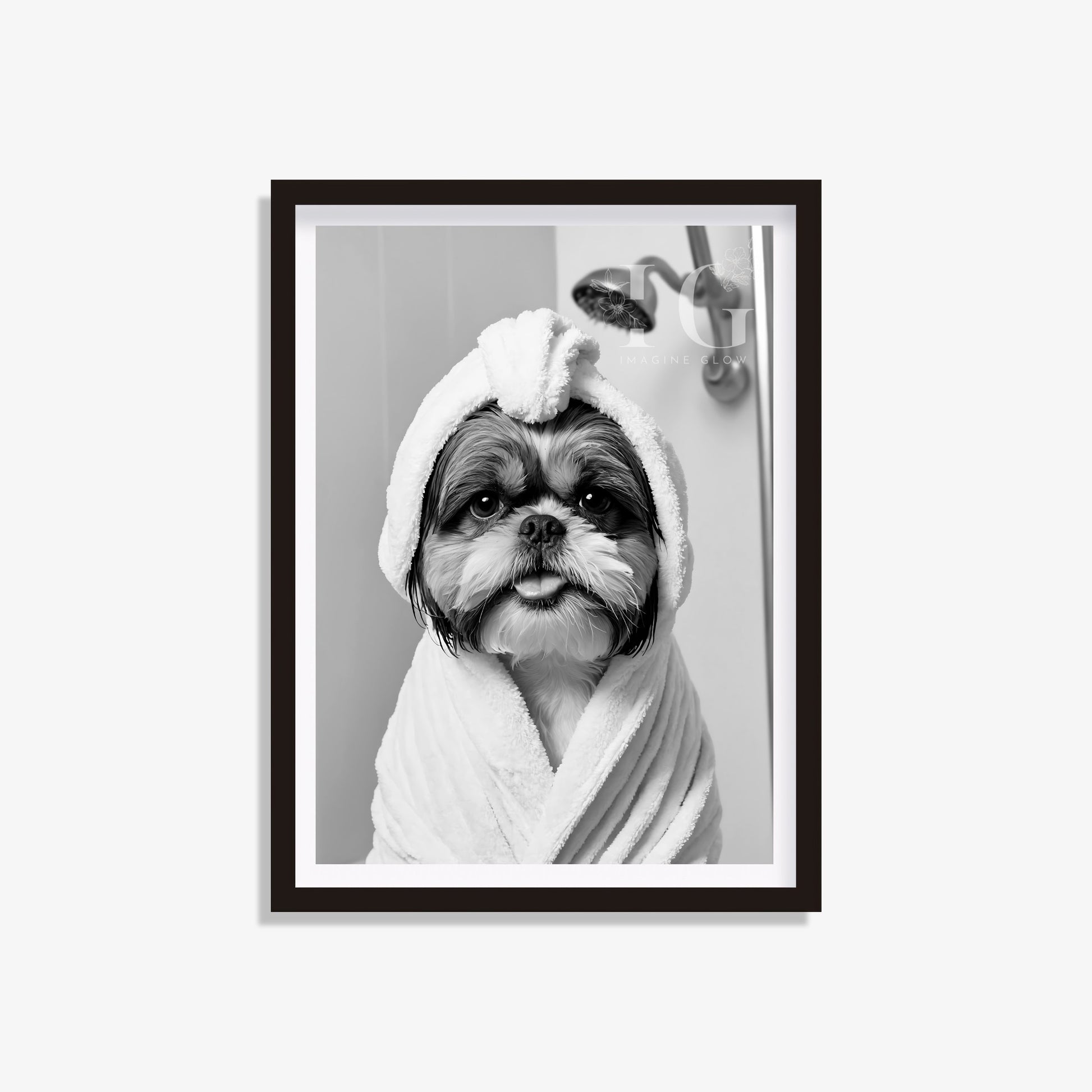 Shih Tzu Dog in Bathrobe Printable - Cute Bathroom Wall Art
