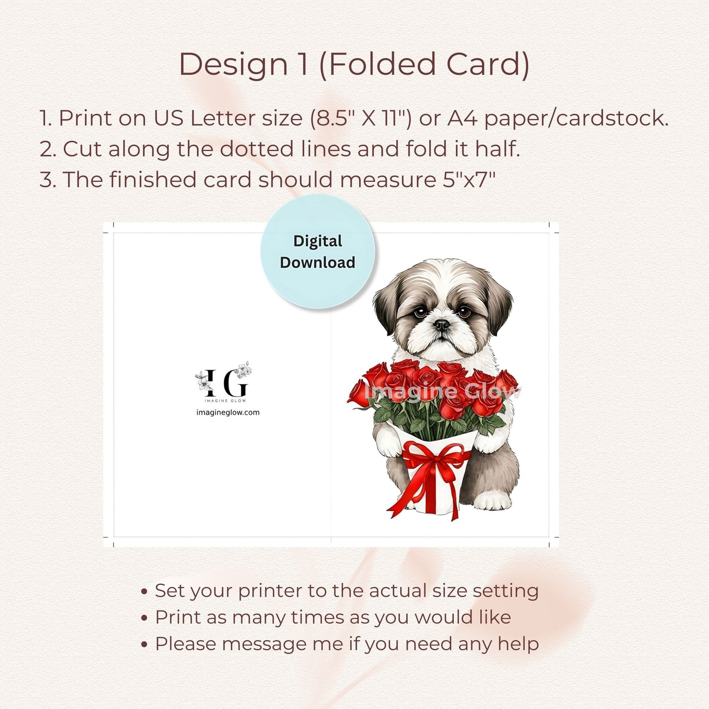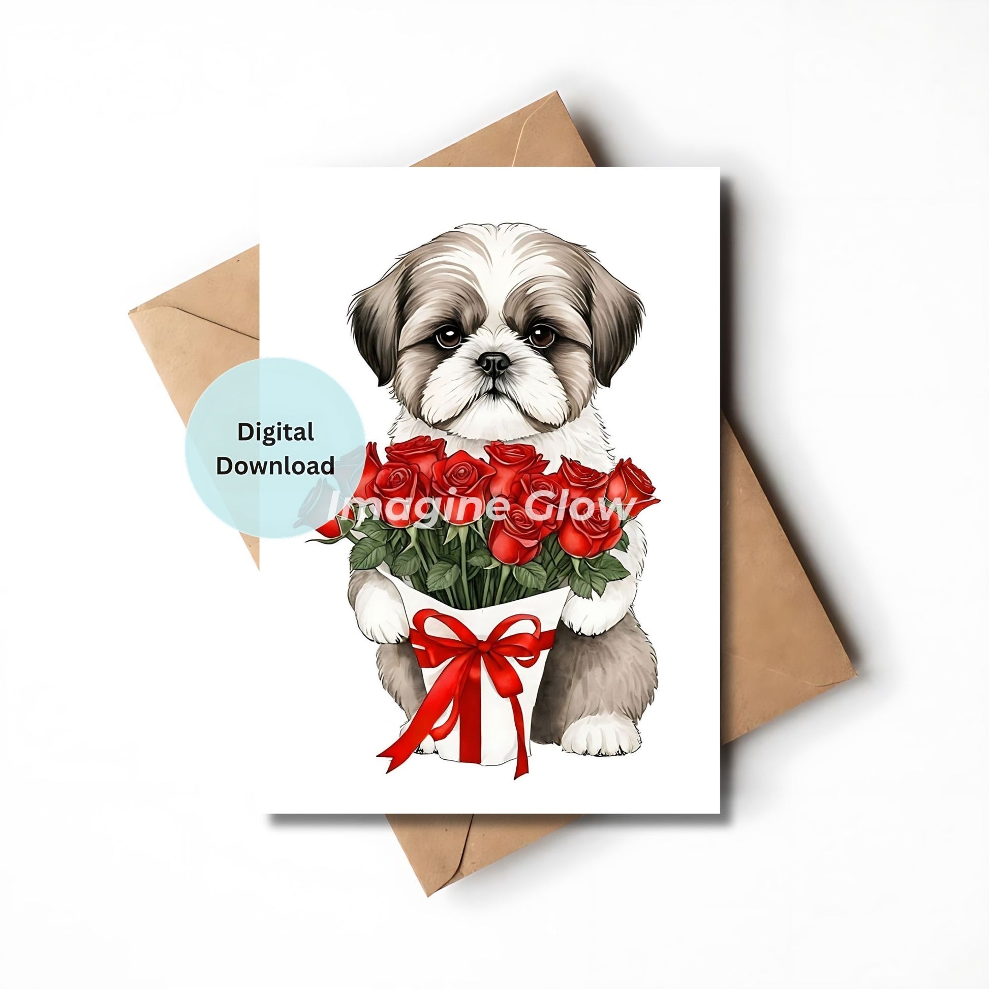 Express your love with this adorable Shih Tzu Romantic Love Card, perfect for Valentine's Day, anniversaries, or any romantic occasion. Featuring a charming illustration of a Shih Tzu surrounded by beautiful roses, this printable greeting card conveys heartfelt emotions and appreciation. Easy to download and print, this card allows you to add a personal touch to your messages for your loved one. Make any celebration special with this delightful Shih Tzu-themed card that will surely bring a smile to their face.