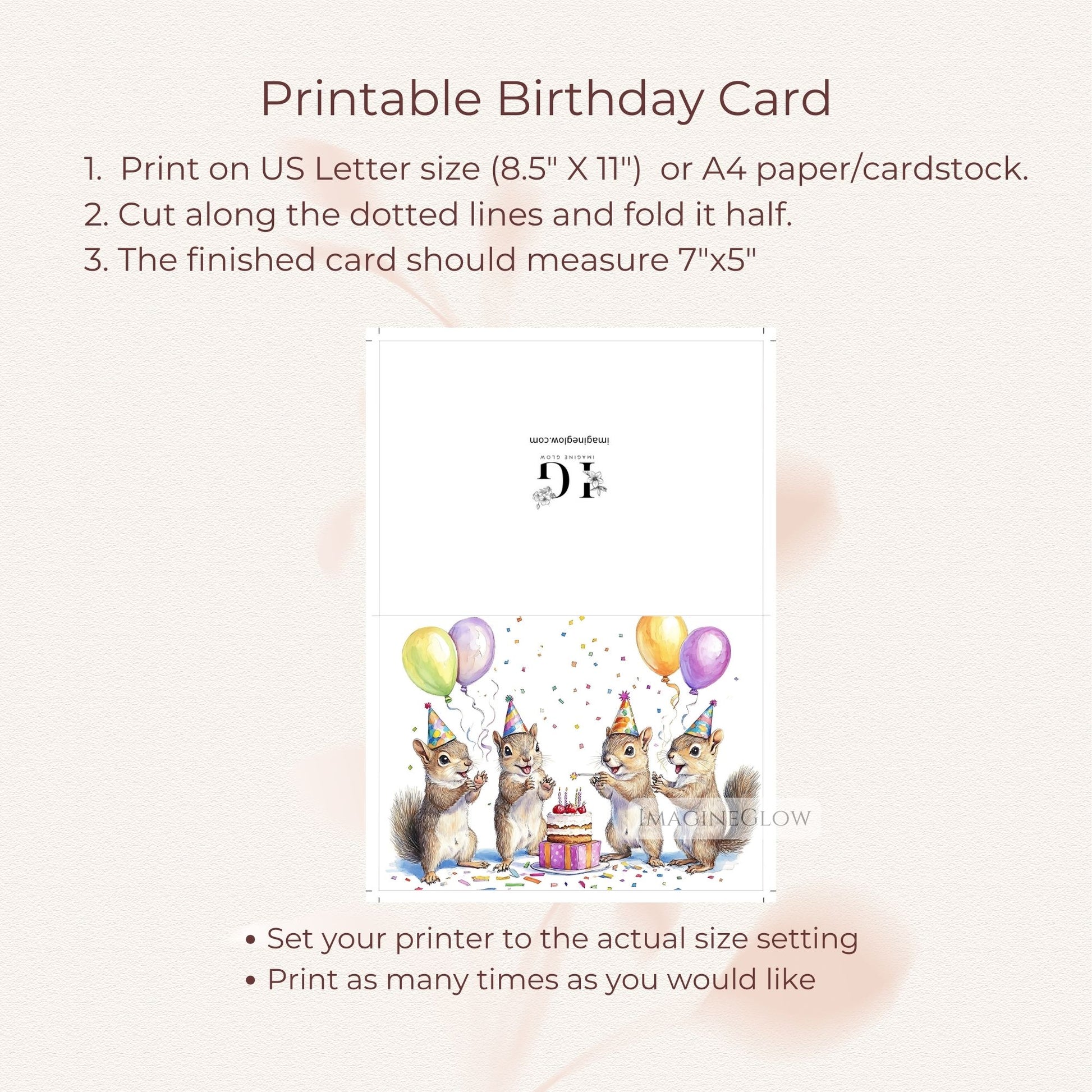 With its combination of cute artistry and rustic woodland charm, this Squirrel Birthday Card works beautifully for birthdays in every season. Download, print, and give a card that’s as delightful and unique as the person you’re celebrating.