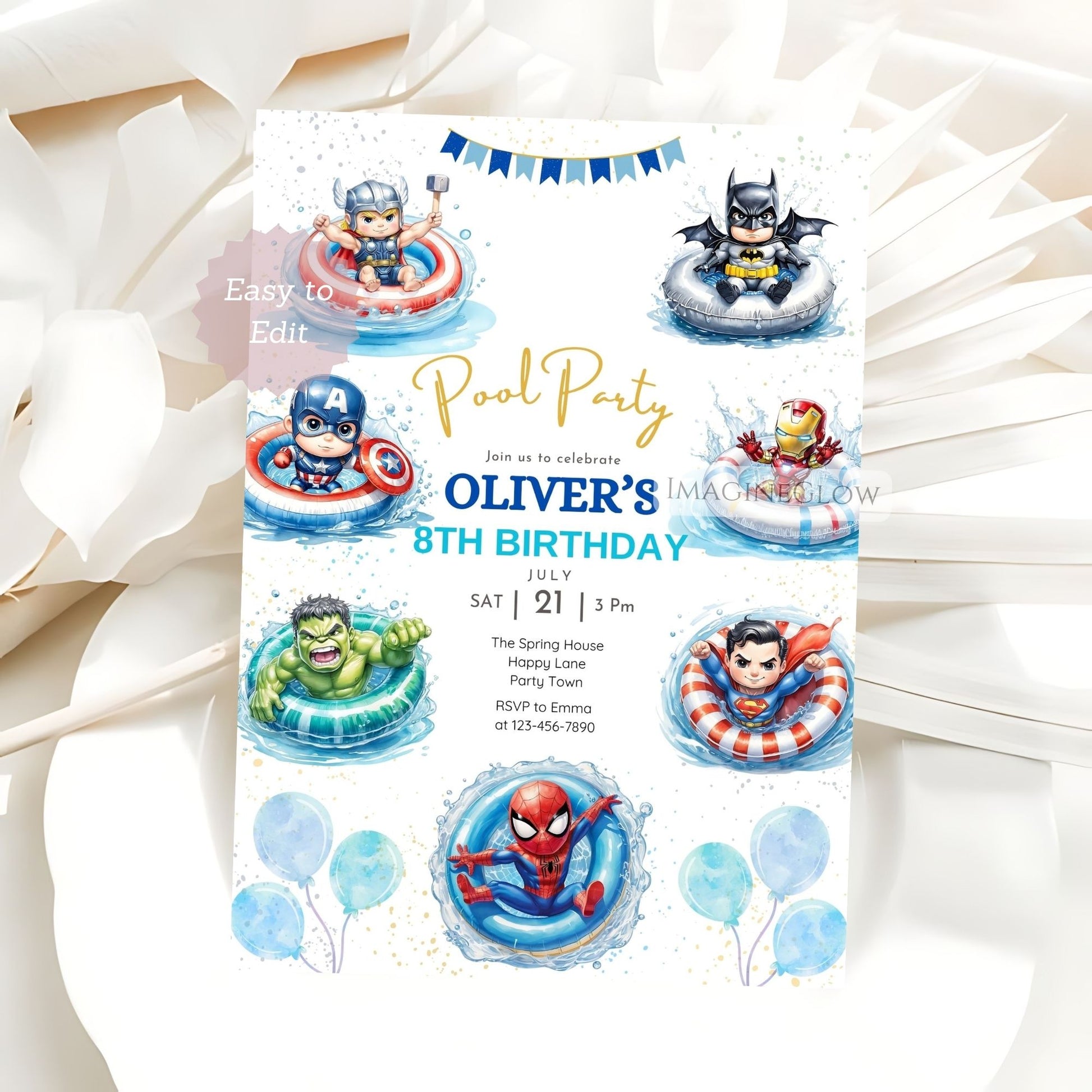 Whether your party is at home, in a rented hall, or even a backyard hero training camp, this invite fits right in. It's also great for fans of Marvel, DC Comics, or anyone who wants a dynamic and exciting start to their celebration.