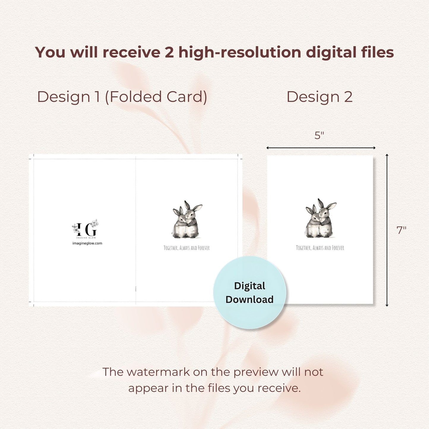 Celebrate enduring bonds with our "Together, Always and Forever" card. Perfect for expressing love and support to friends, family, or a special someone, this heartfelt greeting card design features adorable bunnies embracing, making it ideal for any occasion. Whether you’re celebrating a birthday, anniversary, or just want to show you care, this printable card captures the essence of connection and togetherness. Download it instantly and share the love today!